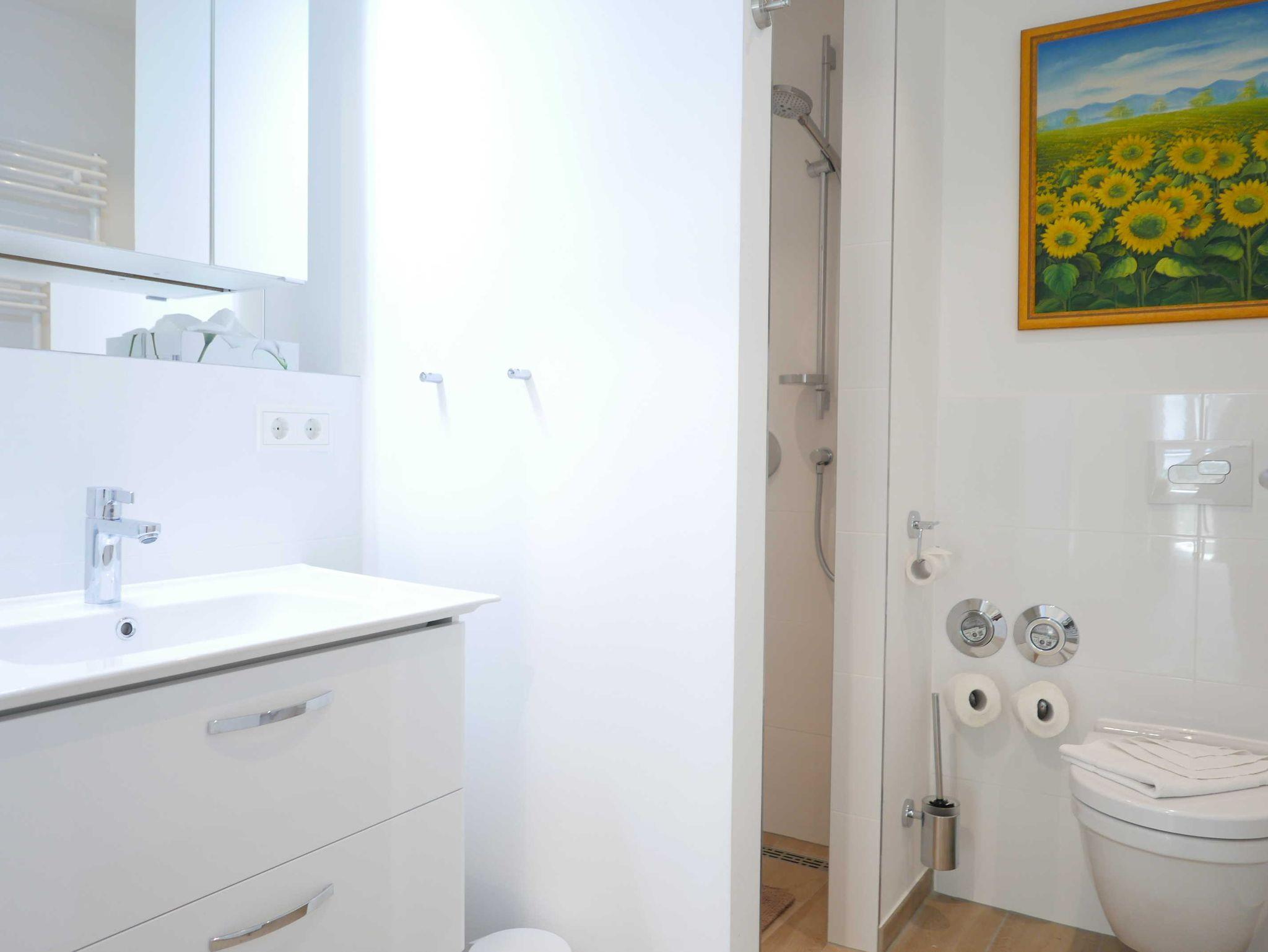 Helle freundliche 2 Zimmer Ferienwohnung mit einer eigenen Sauna in der Wohnung und einer schönen möblierten Terrasse, von der man das Meer rauschen hören kann. Eine wunderschöne Lage. Die Wohnung ist stilvoll eingerichtet mit bodentiefen Fenstern und Fußbodenheizung - die Küche bietet alles was man braucht inkl. Geschirrspülmaschine und vielen mehr.