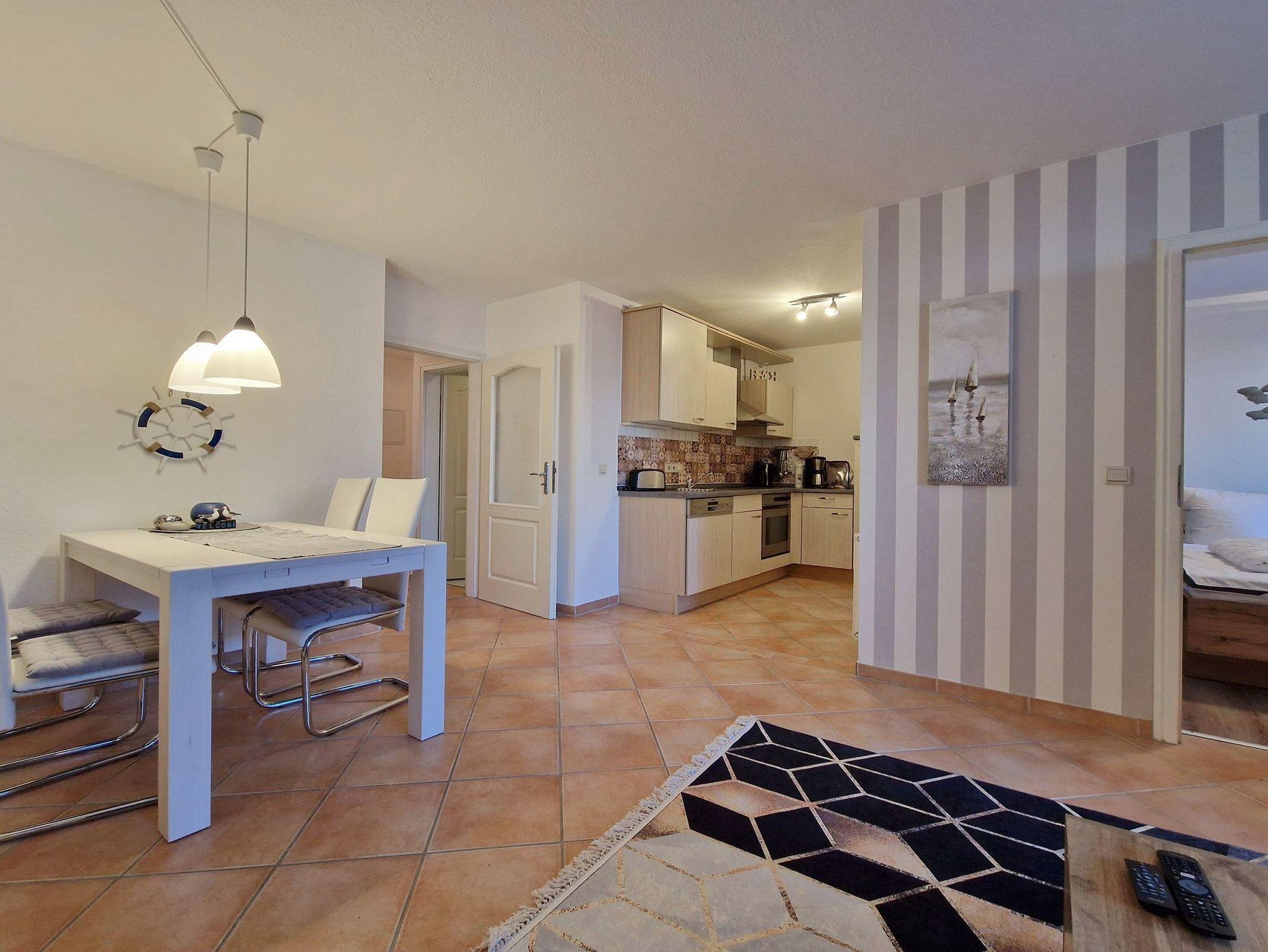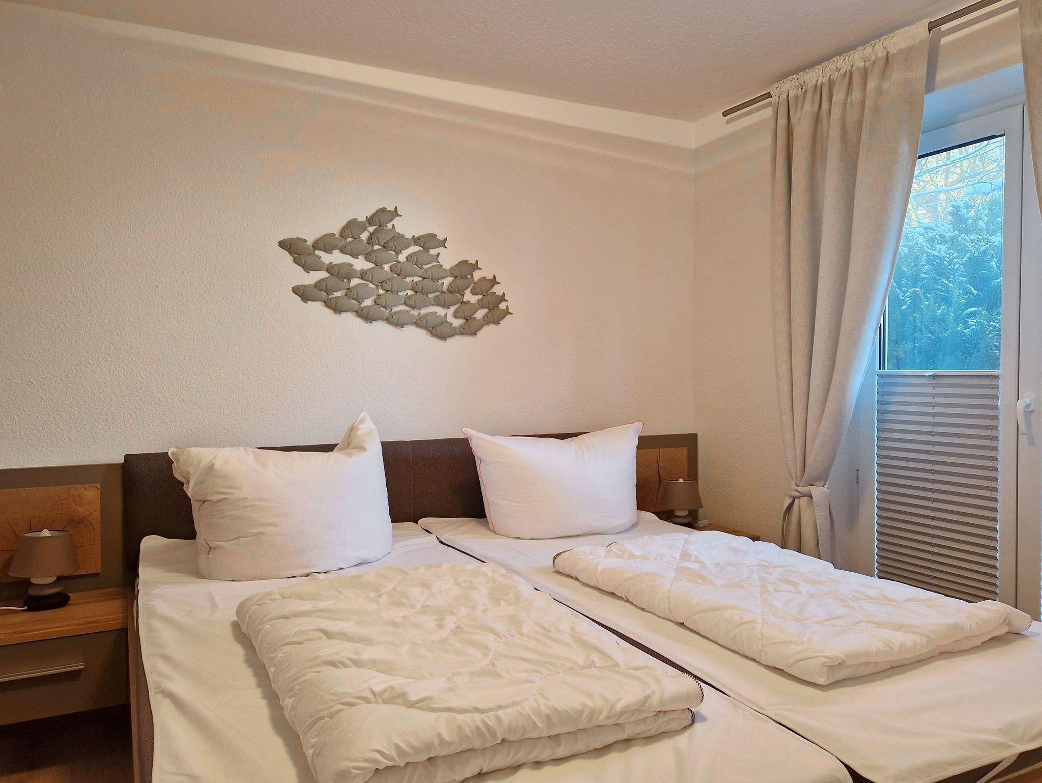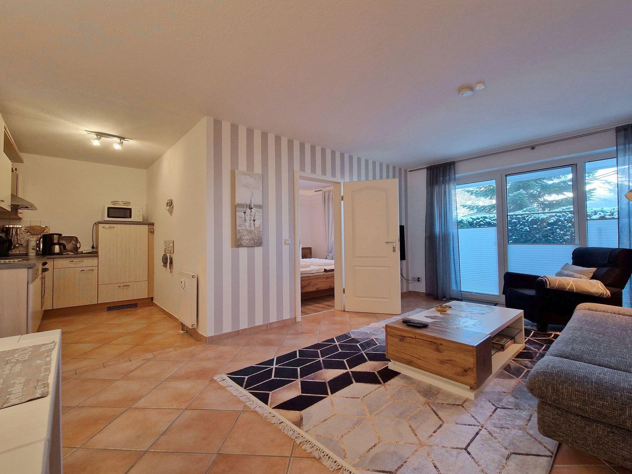 • ALLGEMEINE ECKDATEN: 2-Raum Ferienwohnung für bis zu 4 Gäste, 48m², Terrasse, umzäunter kleiner Garten, Fahrstuhl von der Tiefgarage zur Wohnung, ebenerdig