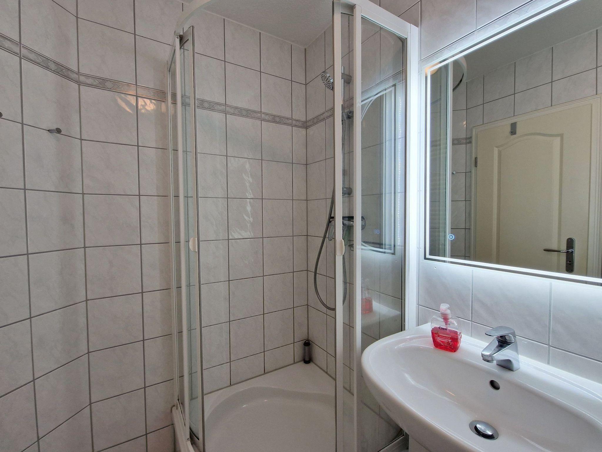 Das innen liegende Bad ist mit einer Dusche und WC versehen.