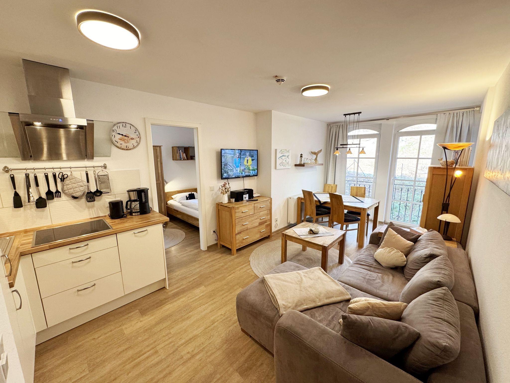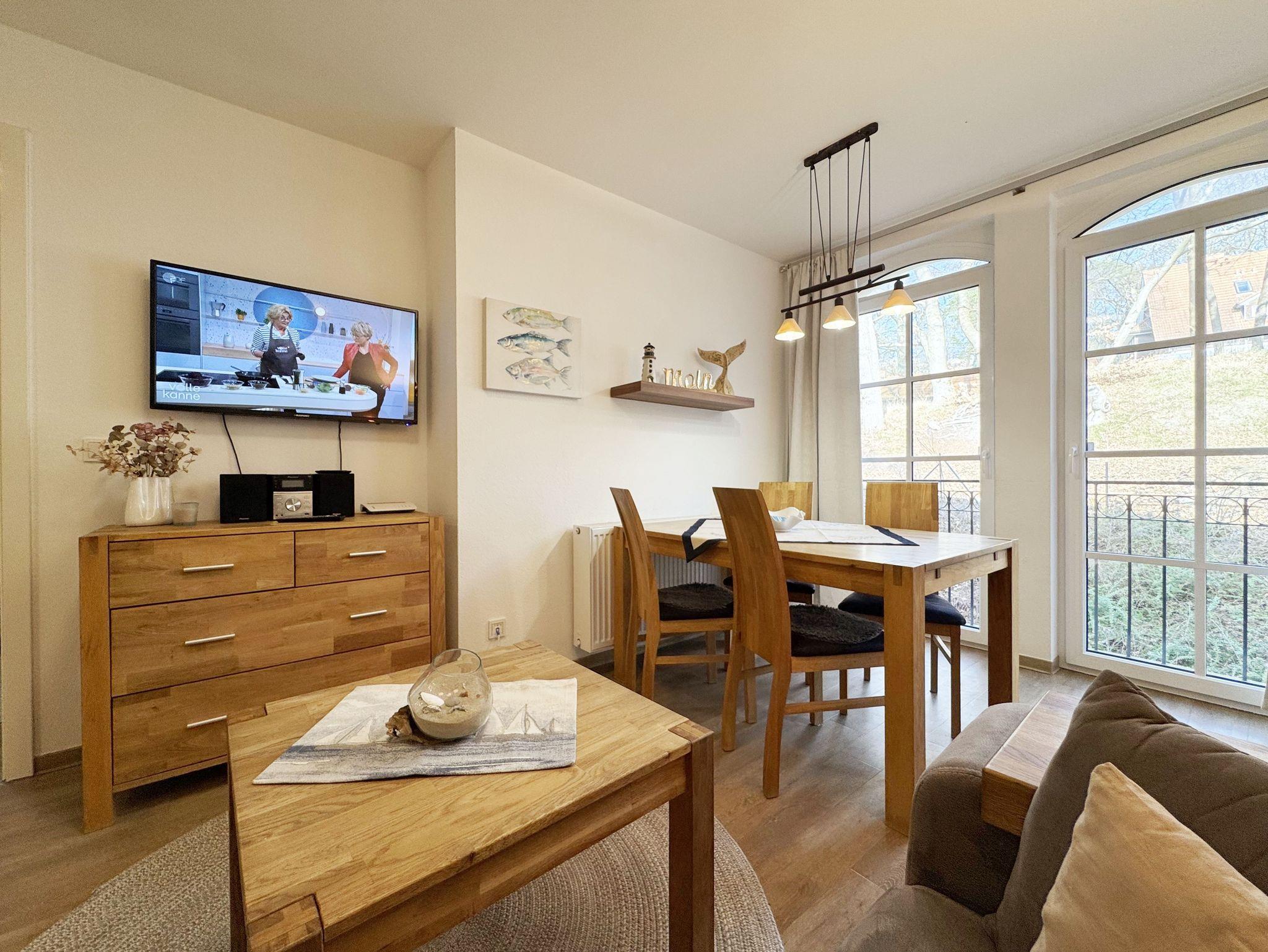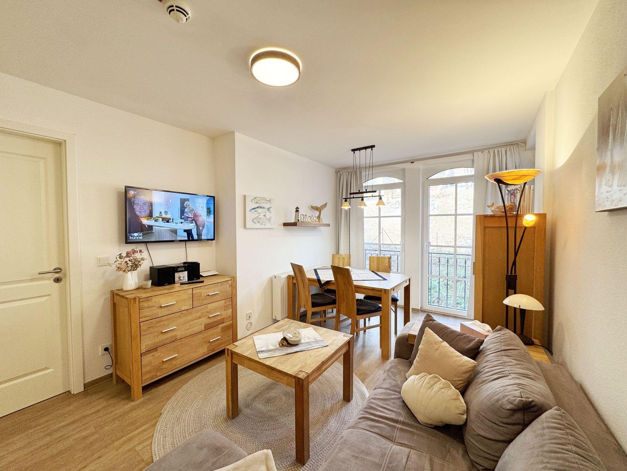 Komfortable Ferienwohnung mit Balkon und eingeschränktem Meerblick nahe Strand und Kurpark in Baabe.