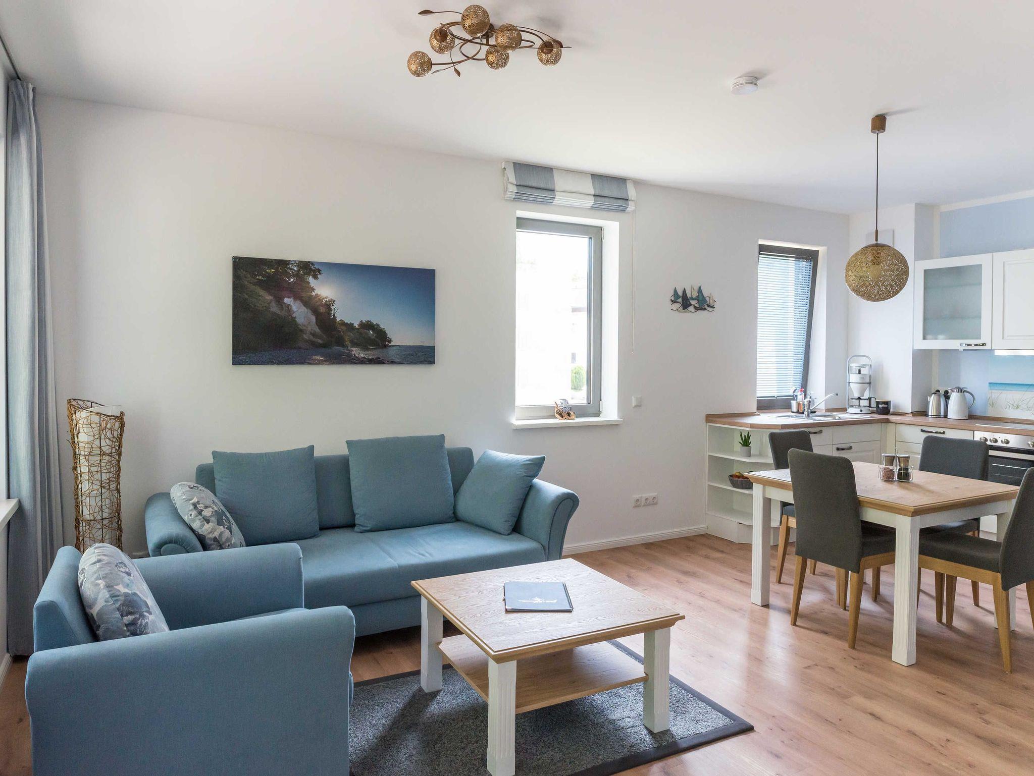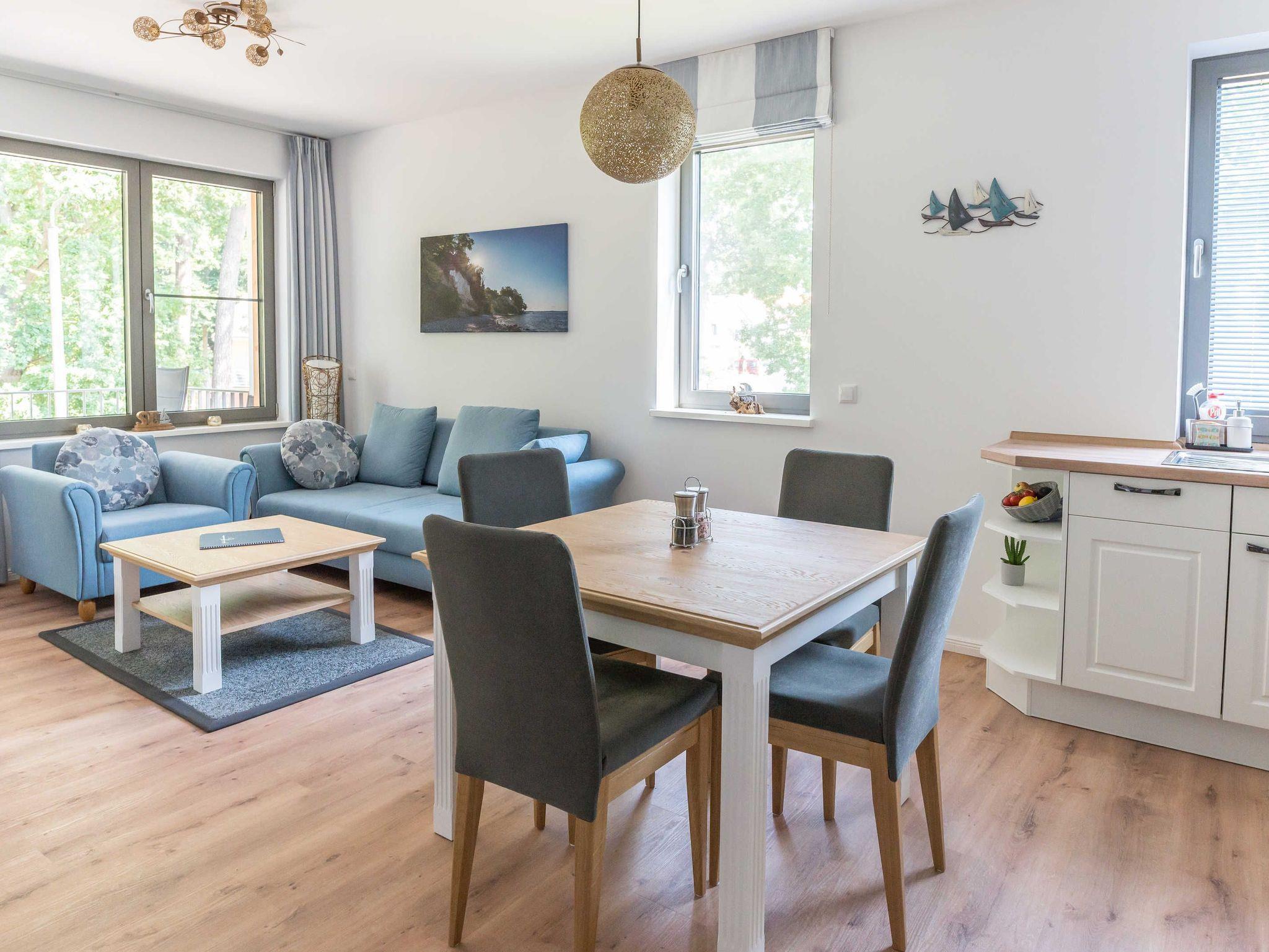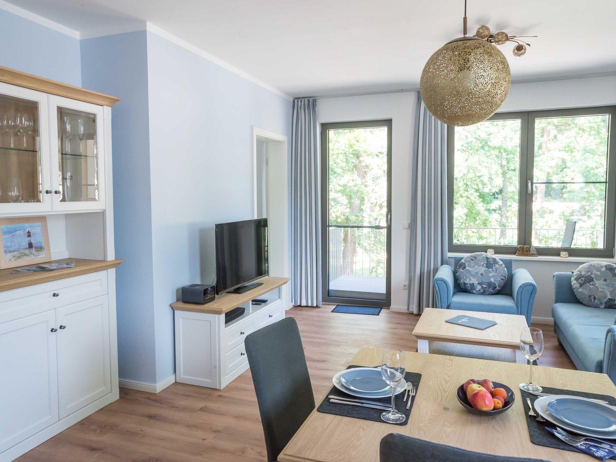Exklusive Ferienwohnung Blaue Oase in Baabe mit Balkon und Parkblick, nur 300 m vom feinsandigen Ostseestrand entfernt.