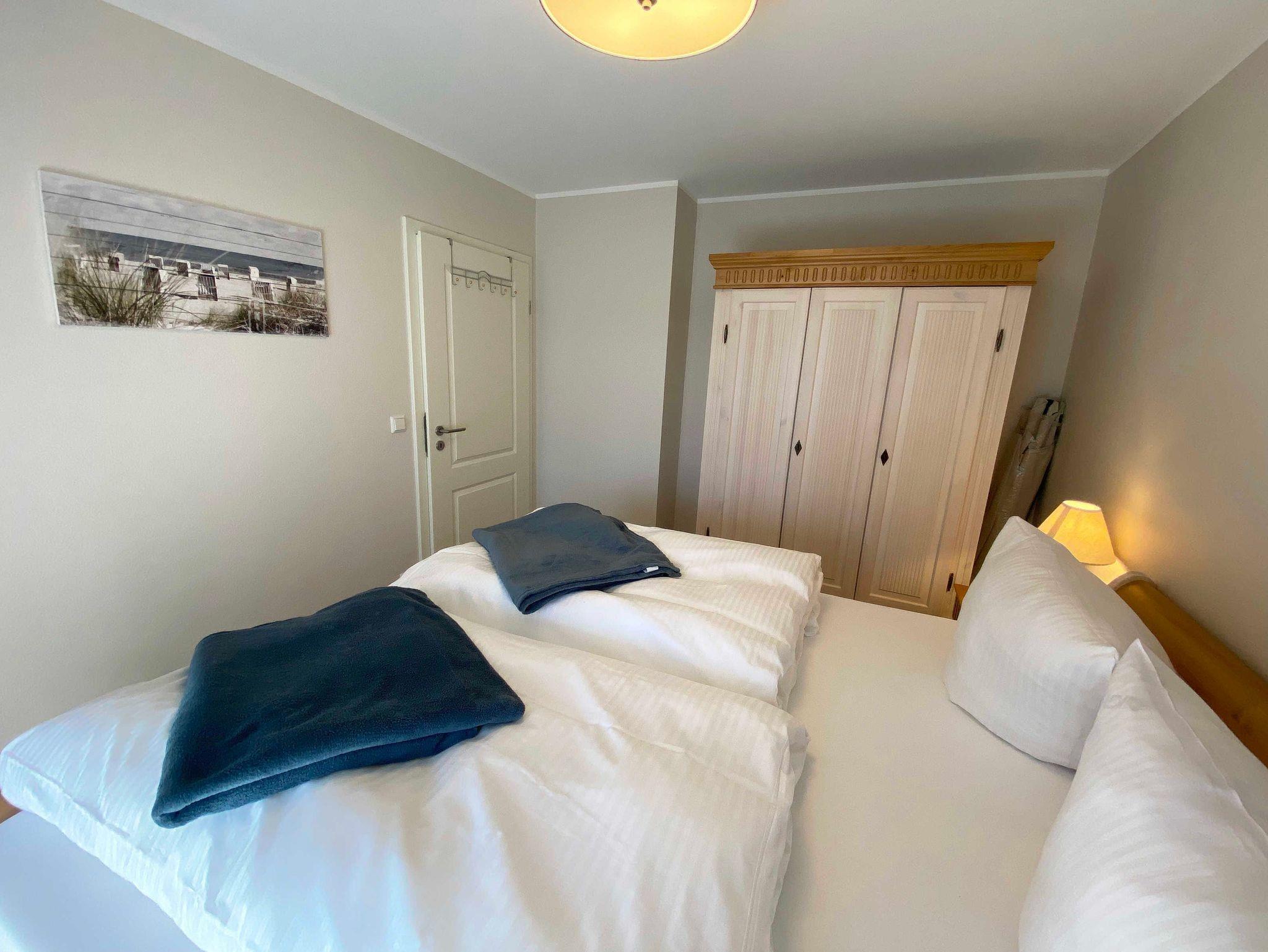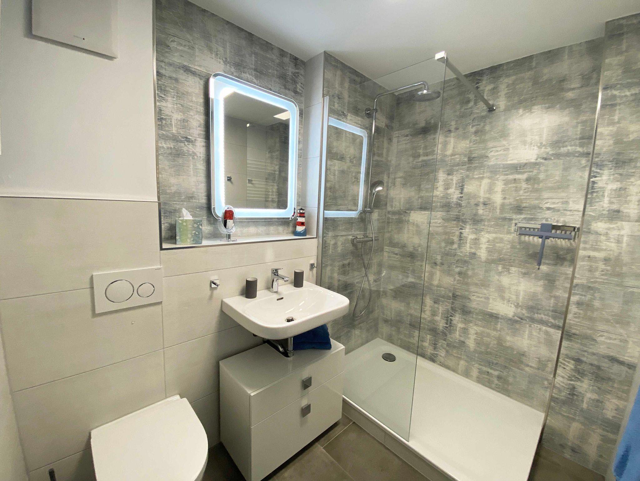 Die ca. 45 qm große Nichtraucherwohnung befindet sich im 1. Obergeschoss im Haus Bella Casa im Herzen von Baabe. Die Ferienwohnung bietet Ihnen Platz für max. 3 Erwachsene. Wenn sie die Wohnung betreten, begrüßt Sie ein kleiner Flur mit separater Garderobe. Der Wohn- Essbereich mit offener Küchenzeile ist mit einer gemütlichen Couch, welche sich mit wenigen Handgriffen in ein Bett verwandelt werden kann (Liegefläche 1,60m x 2,00m), mit einem Couchtisch, einer Leselampe, einem Lowboard mit Smart-TV und einem DAB-Radio mit USB-Anschluss und Bluetooth Anschluss ausgestattet. Eine kleine Sammlung an Büchern, Gesellschaftsspielen und ein Internetzugang (WLAN) runden den Bereich ab. Im angrenzenden Essbereich vor einem bodentiefen Fenster befindet sich ein Esstisch. Die offene Eck-Küchenzeile ist mit einem Kühlschrank mit Gefrierfach, einem Geschirrspüler, einem 4 Zonen Ceranfeld mit Backofen, einer Mikrowelle, einer Kaffeemaschine und zusätzlich einer Nespresso Kapsel-Maschine, einem Toaster, einem Wasserkocher sowie mit diversen Küchenutensilien ausgestattet und bietet Ihnen alles, was Sie zum Kochen benötigen. Vom Wohnbereich gelangen Sie direkt auf den bestuhlten (Süd/West) Balkon mit Sonnenschirm, wo Sie einen wunderbaren Ostseetag gemütlich ausklingen lassen können. Vom Wohnzimmer gelangen sie ins Schlafzimmer. Dieses hat auch einen direkten Zugang zum Balkon und ist mit bodentiefen Fenstern versehen. Hier finden Sie ein Doppelbett (1,80m x 2,00m), Nachttischablagen mit Lampen und einen Kleiderschrank. Für einen ruhigen Schlaf sorgen in der gesamten Wohnung Verdunklungsvorhänge und Insektenschutzgitter. Das moderne und neu renovierte Bad verfügt über eine offene Glasdusche mit niedrigem Einstieg, einen Waschplatz, ein WC, einem Kosmetikspiegel, einem Fön sowie einem Handtuchtrockner und Fußbodenheizung. Haustiere sind nicht erlaubt. Reinigungsutensilien wie einen Staubsauger, Wisch Set, Kehr Set, Wäscheständer sowie ein Bügeleisen und Bügelbrett ist vorhanden. Ein PKW-Stellplatz (Nr.07) befindet sich hinter dem Haus. Für Ihre mitgebrachten Fahrräder befindet sich im Garten eine Unterstellmöglichkeit. Die Erstausstattung eines Wäschepaketes (komplette Bettwäsche, 1 Duschhandtuch, 2 kleine Handtücher) können Sie bis 14 Tage vor der Anreise gegen einen Aufpreis dazu buchen oder durch eigene ergänzen. Ab 2 gebuchten Paketen erhalten Sie einmalig 1 Geschirrtuch und einen Duschvorleger dazu.