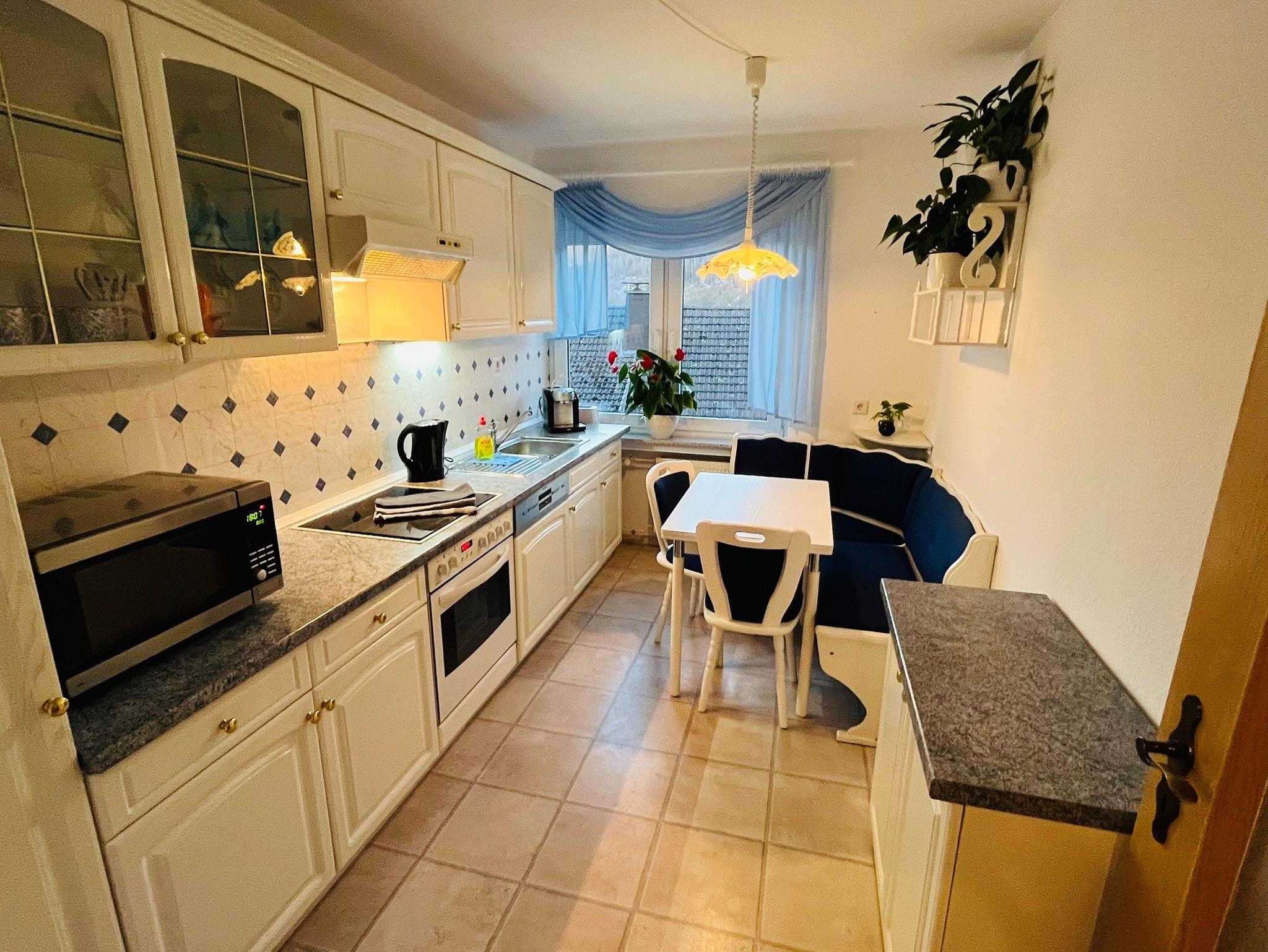 Unsere Ferienwohnung ist 66qm groß und bietet Platz für bis zu 5 Personen (max. 4 erwachsene Personen). Die Ferienwohnung liegt im Erdgeschoss und ist über 3 Stufen erreichbar. Im großzügigen Wohnzimmer mit Balkon finden Sie ein gemütliches Schlafsofa und eine Büroecke mit Schreibtisch. Der 55 Zoll Smart LED TV rundet das Angebot ab. Das separate Schlafzimmer verfügt über ein 180 x 200cm Boxspringbett mit 40 Zoll Smart LED TV. Die Küche ist voll ausgestattet und verfügt unter anderem über einen Backofen, eine Spülmaschine, eine Kaffeemaschine, einen Wasserkocher, Teller, Besteck, etc.. Wlan ist inklusive, ein Parkplatz steht ebenfalls kostenfrei zur Verfügung.