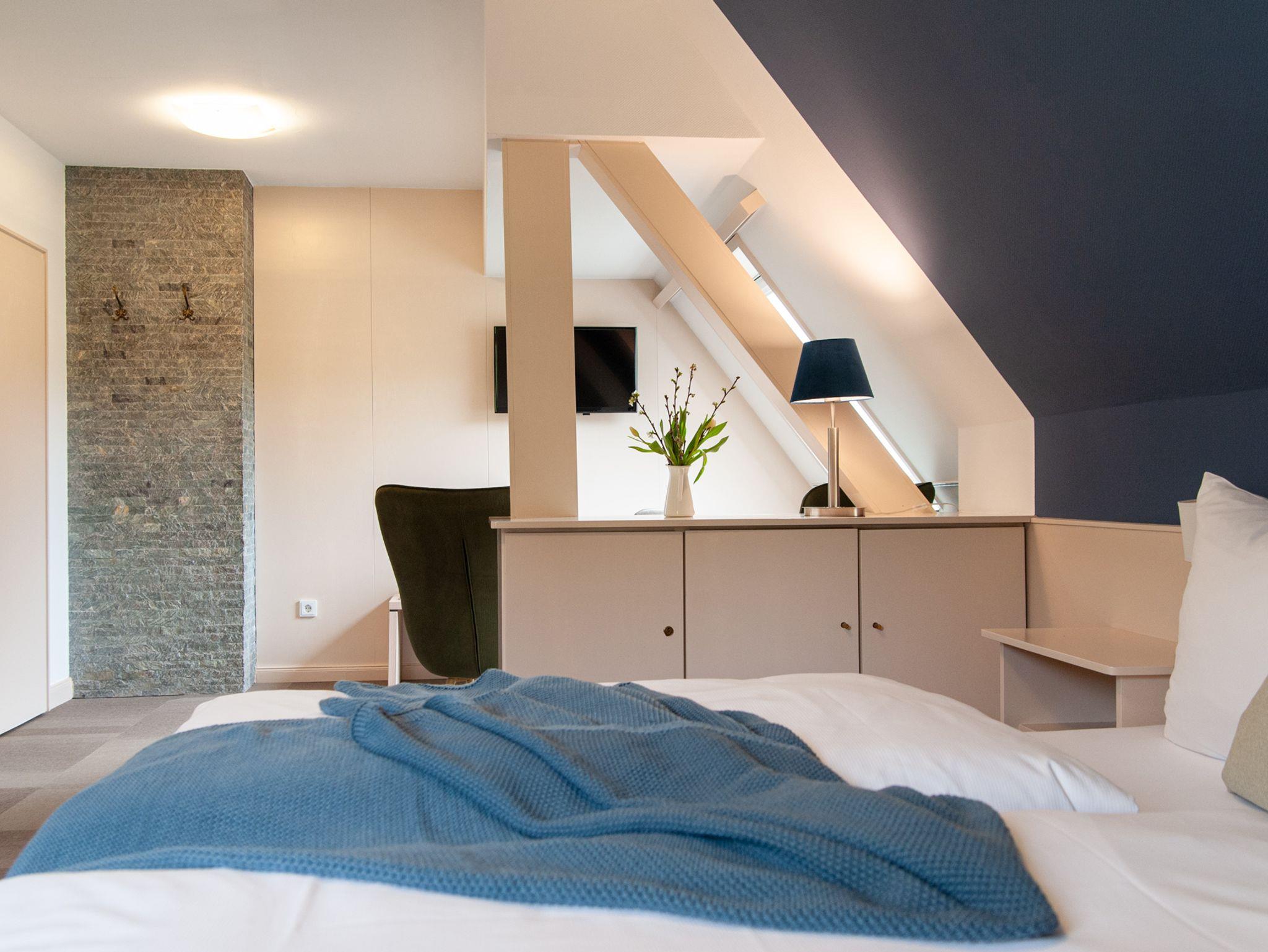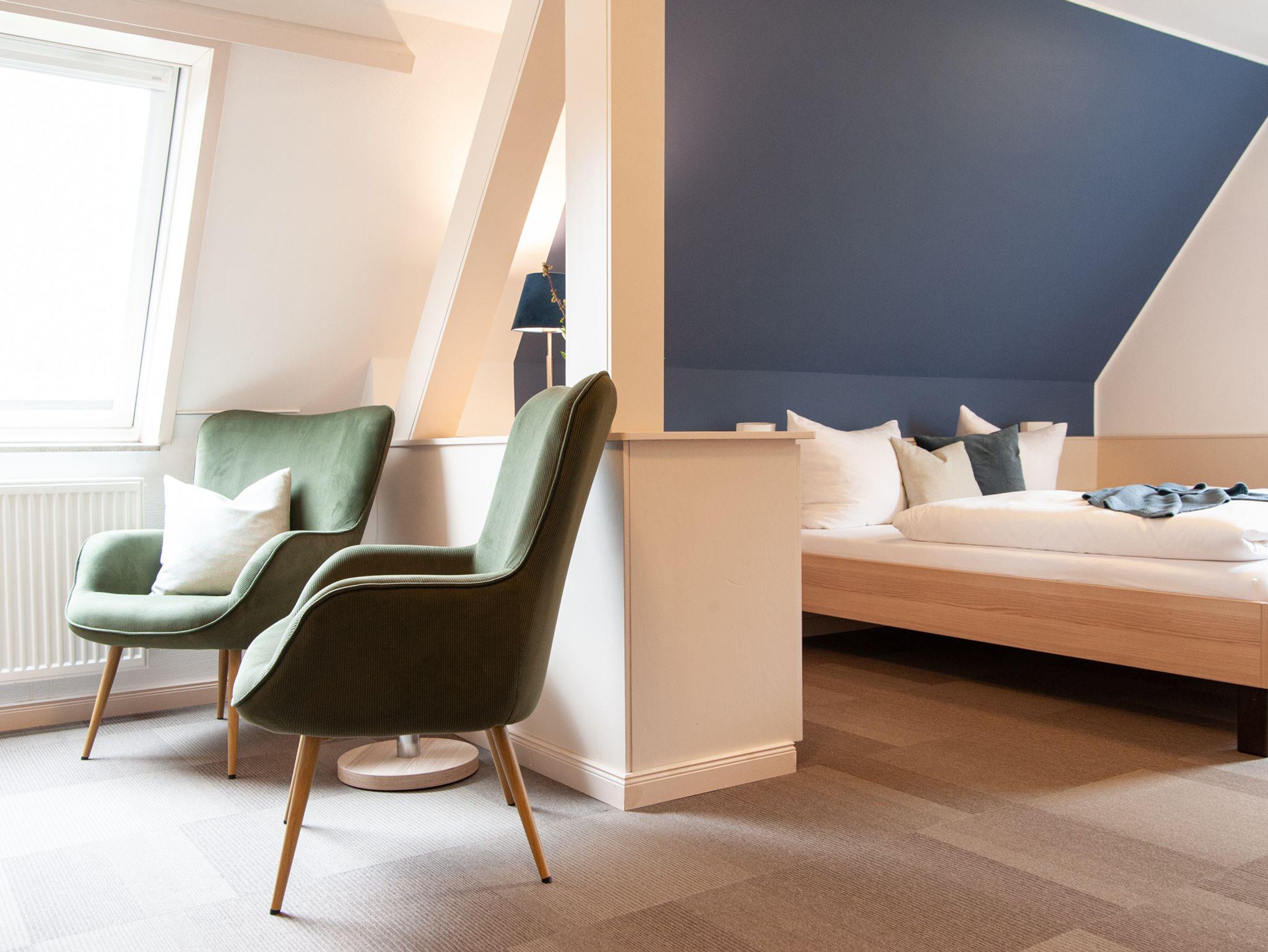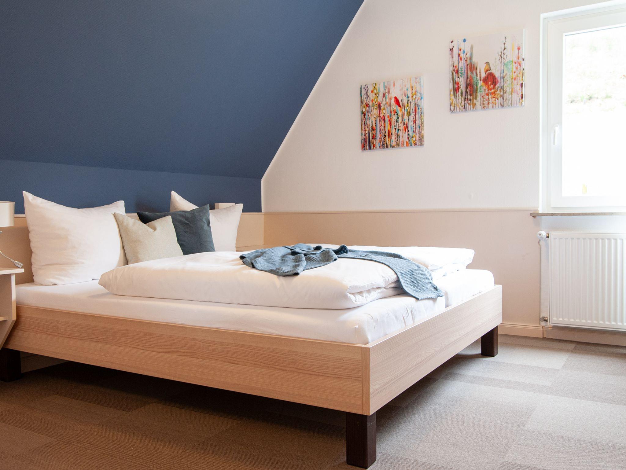 Die beiden klassischen Doppelzimmer Zimmer Nr. 3 (ca. 24 qm) und Zimmer Nr. 6 (ca. 26 qm) sind hell und großzügig. Beide sind mit einem Fernsehen, TV, Safe und Badezimmer mit Dusche ausgestattet. Es gibt einen Schreibtisch und Sitzmöglichkeiten. Hier könnt ihr den Blick auf die umliegenden Wiesen und Wälder genießen.