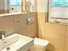 • Badezimmer mit Dusche, WC, Waschbecken, Haarfön, Kosmetikspiegel und Seife