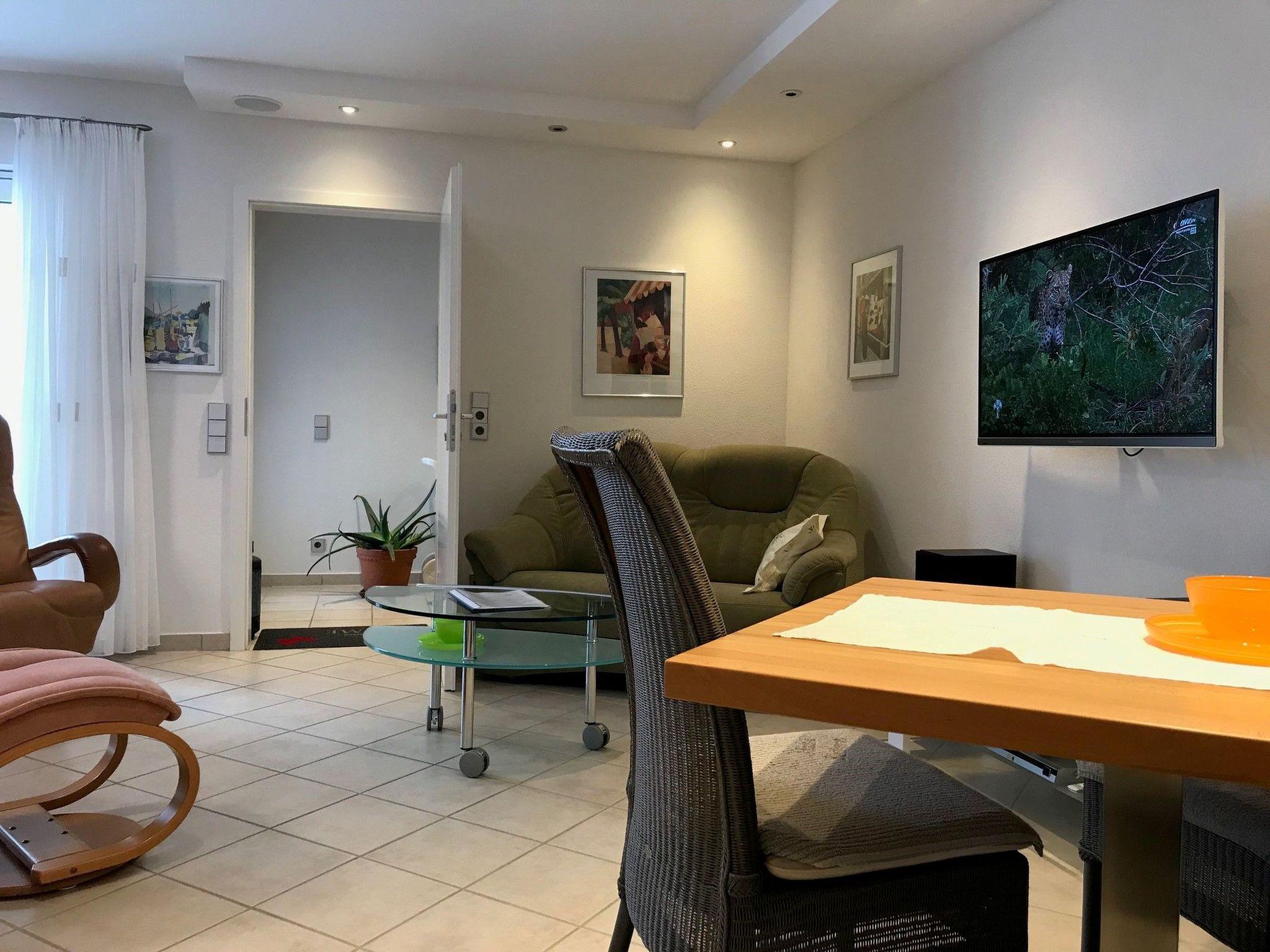 Im Inneren erwartet Sie ein liebevoll neugestaltetes Appartement, das für zwei Personen auf 48qm konzipiert wurde. Als Nichtraucher- und Allergikerfreundliche Unterkunft bietet es einen komfortablen, hellen Wohnbereich mit einer Polstersitzgruppe, zwei verstellbaren Fernsehsesseln aus Leder, Flachbild-TV, DVD-Player sowie einer voll ausgestatteten Küche. Diese enthält unter anderem einen Duo-Elektroherd mit Cerankochfeld, Mikrowelle und Geschirrspüler. Das moderne Wohn-/Schlafzimmer mit einem 2 Meter großen Doppelbett und ein hochwertig ausgestattetes Badezimmer runden das Wohnangebot ab und garantieren zusammen mit der kostenlosen WLAN-Verbindung einen angenehmen Aufenthalt.