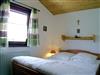 Ein Schlafzimmer mit 2-türigem Schrank und Doppelbett (160 cm x 200 cm), Fenster mit Rollladen, LCD-TV mit 80 cm.