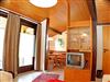 Sie wohnen in einem gemütlichen 2-Zimmer-Ferienhaus für bis zu 4 Personen auf ca. 44 m² Wohnfläche. Ein Schlafzimmer mit Doppelbett, über Leiter erreichbare Schlafkoje für Kinder ab 5 Jahren, Wohnraum mit bequemer Couchgarnotur, separater Essplatz, voll ausgestatteter Küchenbereich mit Geschirrspüler, Mikrowelle und Backofen, Dusche/WC, Abstellraum, Terrasse, Kabel-LCD-TV. Inklusive Kinderreisebett und Kinderhochstuhl. PKW-Stellplatz im Aussenbereich.