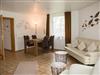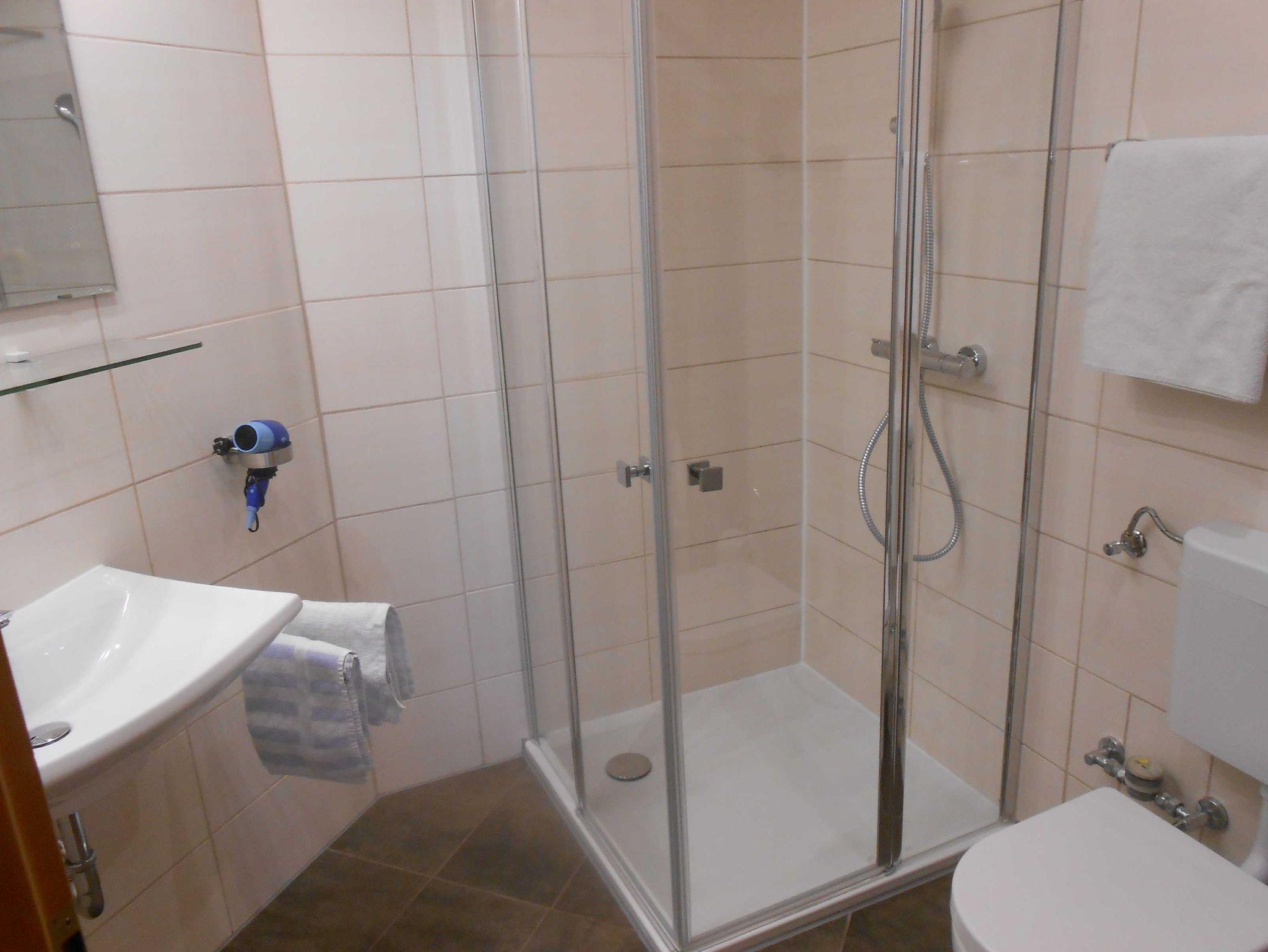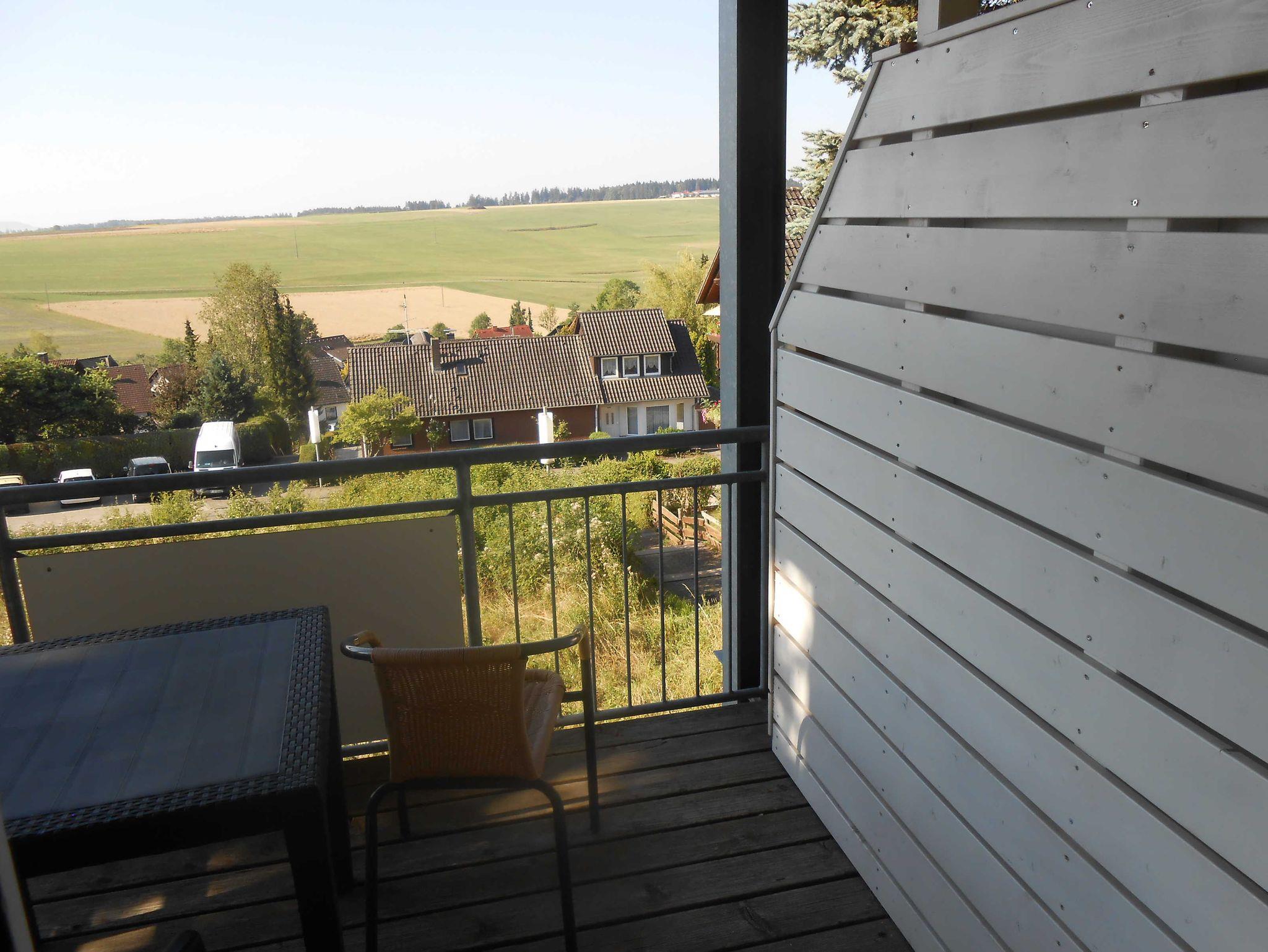 2 - Zimmer Ferienwohnung , 43 qm , Balkon abgeteilt , Südlage mit Panoramablick . Getrennter Wohn-- und Schlafraum , Doppelbett , Betten können auseinander gestellt werden , Wohnbereich mit Küche Ess-- und Sitzecke , Flachbildfernseher . neues Bad ,DU / WC mit Fenster , kleiner Vorraum .