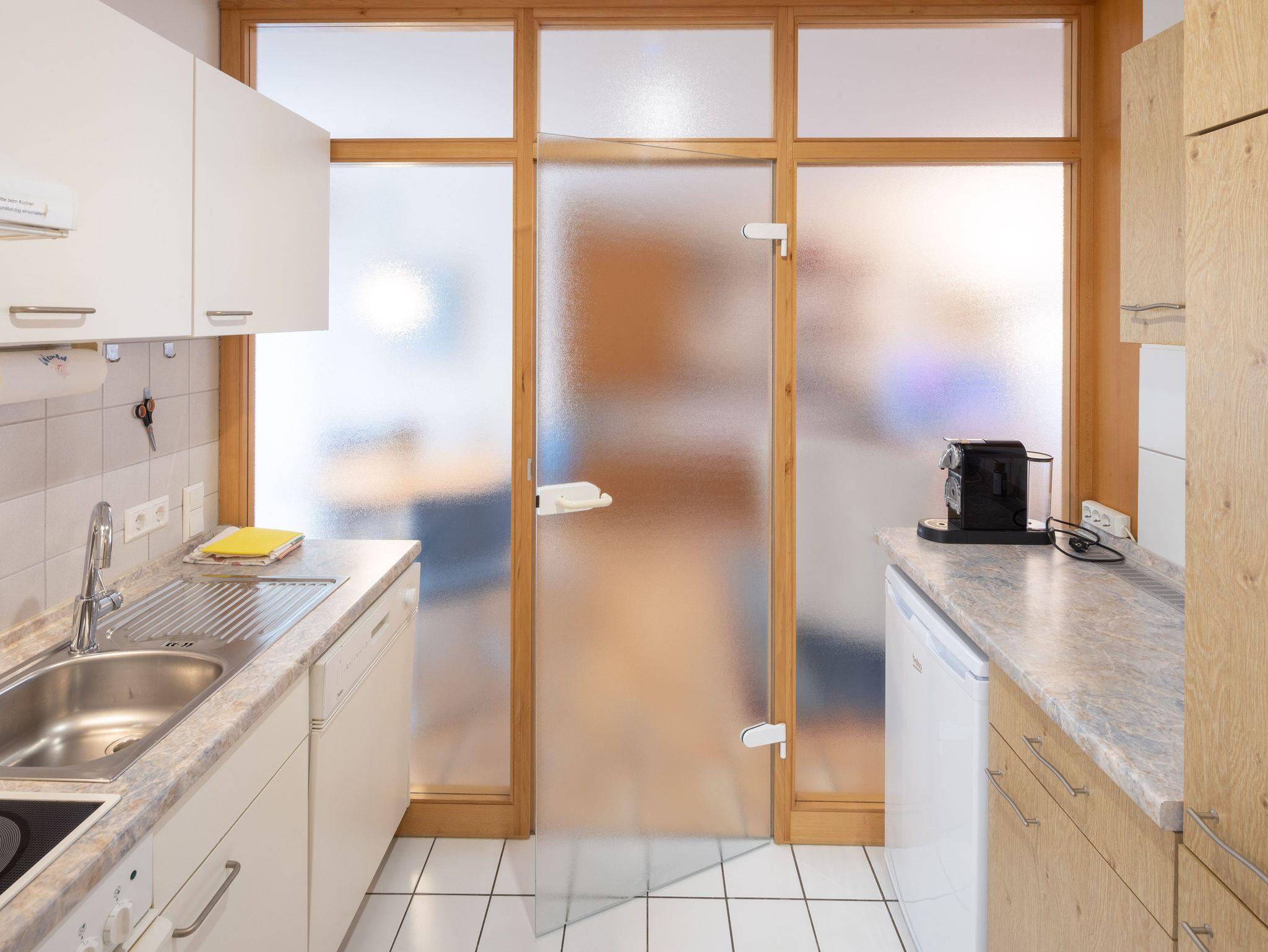 Kochnische mit Ceran-Kochfeld, Backofen, Spülmaschine, Mikrowelle, Kaffee- und