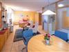 und Radio. Ferner gibt es eine vom Wohn-/Schlafraum mit einer Türe abgetrennte
