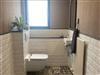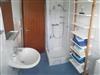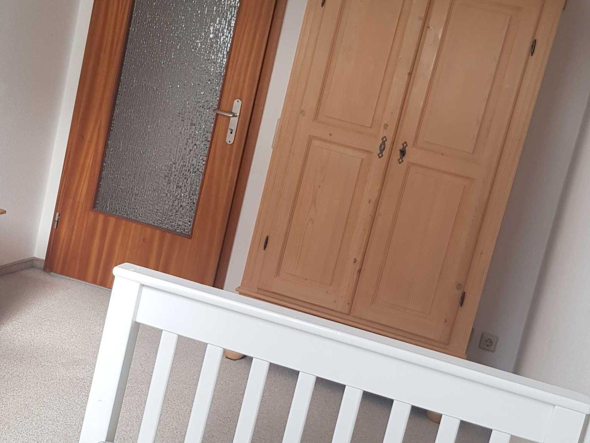 Der Wohnbereich ist mit Laminat ausgelegt. Im Schlafzimmer wurde Teppichboden verlegt und in der Küche sowie im Bad wurden Fliessen verlegt.