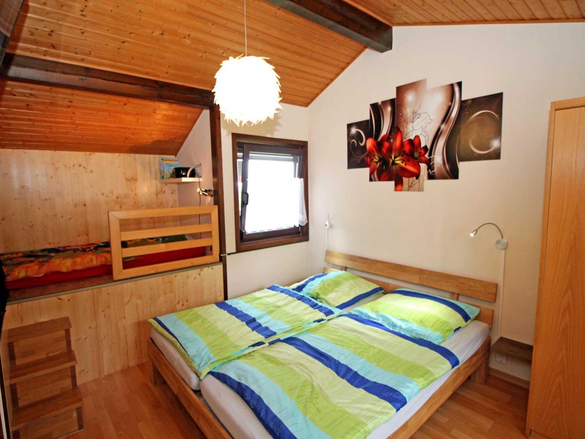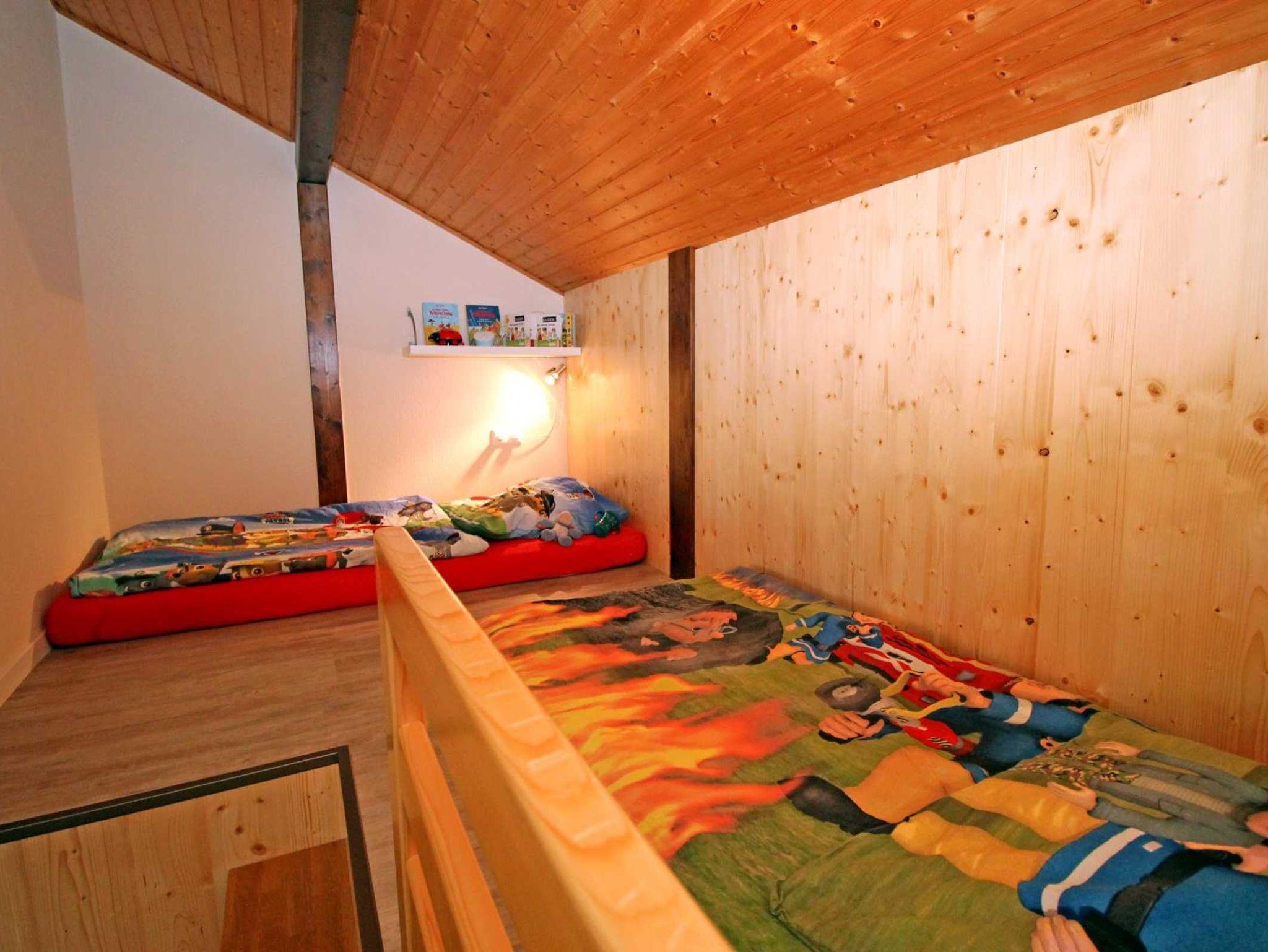Das Kinderschlafzimmer ist mit einem Doppelbett und zwei zusätzlichen Schlafmöglichkeiten auf einer Empore (z.B. für Kinder ab 5 Jahren) einem 40 '' Samsung Smart TV und vier Leselampen ausgestattet.