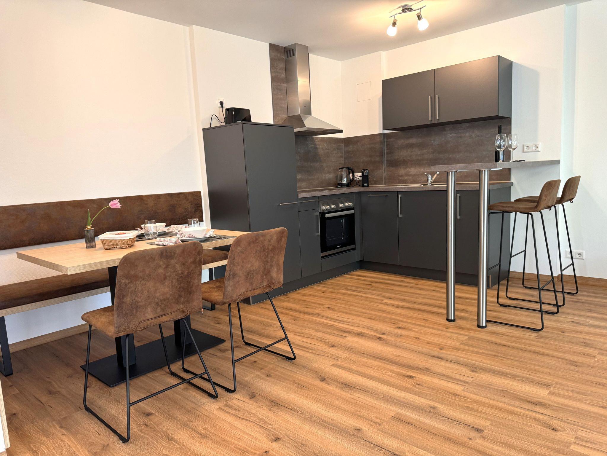 Kulinarische Freiheit: Die offene Küche mit zwei Barsitzplätzen lädt zum gemeinsamen Kochen und Verweilen ein. Genießen Sie hier die Möglichkeit, selbst köstliche Mahlzeiten zuzubereiten und den Tag entspannt zu beginnen oder ausklingen zu lassen. Der zugehörige Balkon eröffnet einen Blick ins Grüne und ist der ideale Ort, um die Seele baumeln zu lassen und die sonnige Atmosphäre von Bad Dürrheim zu genießen.