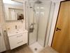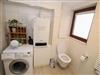 Bad mit viel Stauraum mit Toilette und Duschkabine, Waschmaschine, Bügeleisen, Bügelbrett und Haartrockner