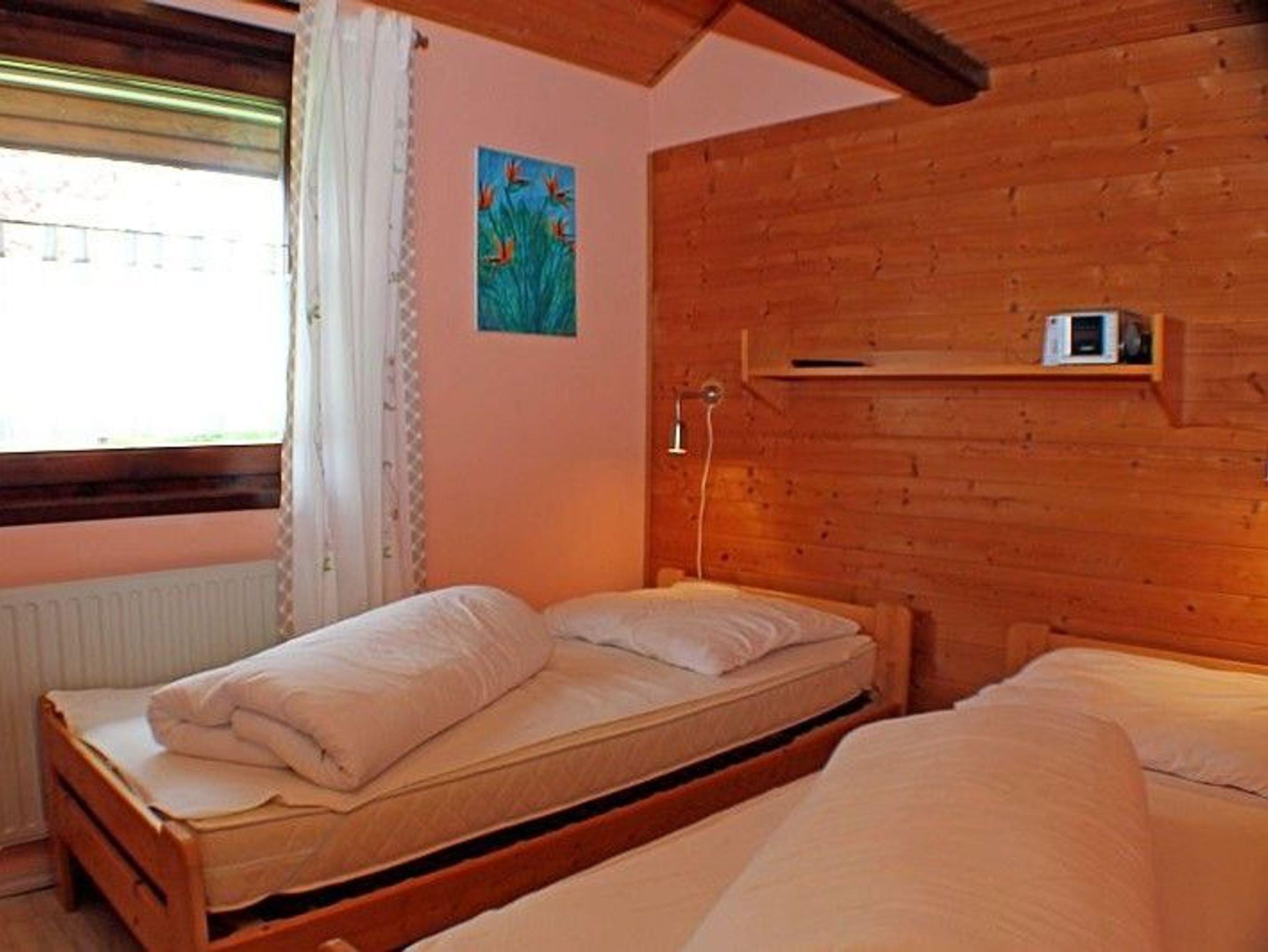 Sie wohnen in einem 3-Zimmer-Ferienhaus für bis zu 5 Personen auf ca. 44 m². Das Ferienhaus verfügt über ein Schlafzimmer mit zwei getrennten Betten die aber auch zum Doppelbett zusammen geschoben werden können, ausgestattet mit Kabel LCD TV und Weckradio, ein Schlafzimmer mit einem Einzelbett. Zusätzlich gibt es eine über eine Leiter erreichbare Schlafkoje für zwei Personen, Wohnraum mit 80 cm Kabel-Smart TV, XBox Spielekonsole die auch als DVD Player genutzt werden kann. Ein paar Spiele und DVDs sind vorhanden. Einbauküche, Ceran-Kochfeld und Mikrowelle, Geschirrspüler, Kühlschrank mit Gefrierfach. Geschirr-, Koch- und Backutensilien sind vorhanden, Sanitärbereich mit Bodenebener Dusche, Rollladen an allen Fenstern, Abstellraum, Terrasse, Kinderreisebett und Kinderhochstuhl, Stellplatz für Autos, Motorräder direkt vor dem Haus. Fahrräder können im direkten Sichtbereich am Haus abgestellt werden. Kostenfreies WLAN, Gastronomie in 150 m Entfernung