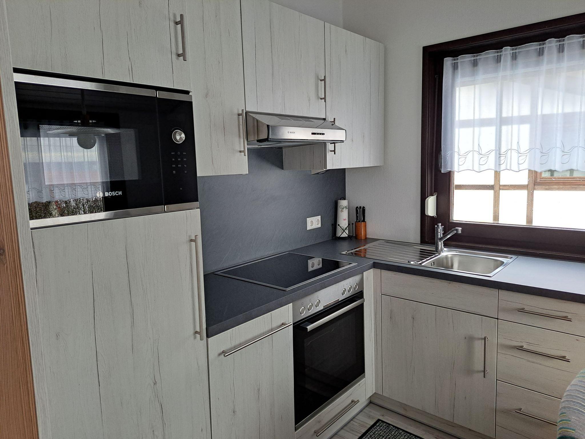Küche: Kühlschrank mit Eisfach, Elektroherd mit Backofen und Ceran-Kochfeld, Dunstabzug, Geschirrspüler, Mikrowelle, Kaffeemaschine (Filtermaschine),Wasserkocher, Toaster, Eierkocher etc.