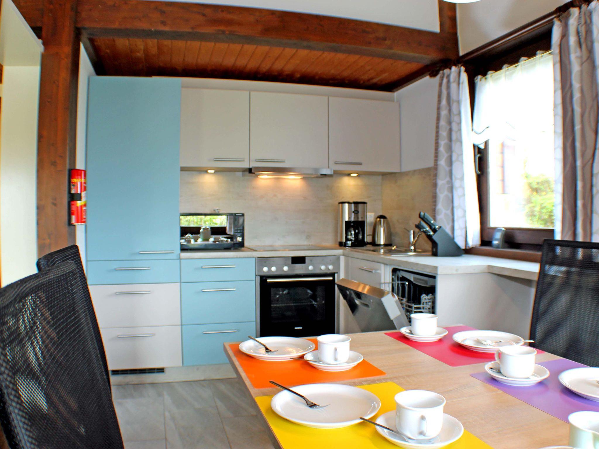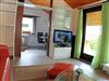 Jedes der 130 Ferienhäuser in verschiedenen Größen, von ca. 40 bis 90 m², verfügt über 1 bis 2 Schlafzimmer, Wohnzimmer mit Kabel- TV, Dusche/ WC, eine voll ausgestattete Küche mit 4- Platten Elektroherd und Backofen, Kaffeemaschine, Kühlschrank usw., eine möblierte Sonnenterrasse und einem Abstellraum. Inklusive 1 Kinderreisebett und 1 Kinderhochstuhl. Alle Ferienhäuser verfügen über einen kostenlosen W-LAN Internetzugang.