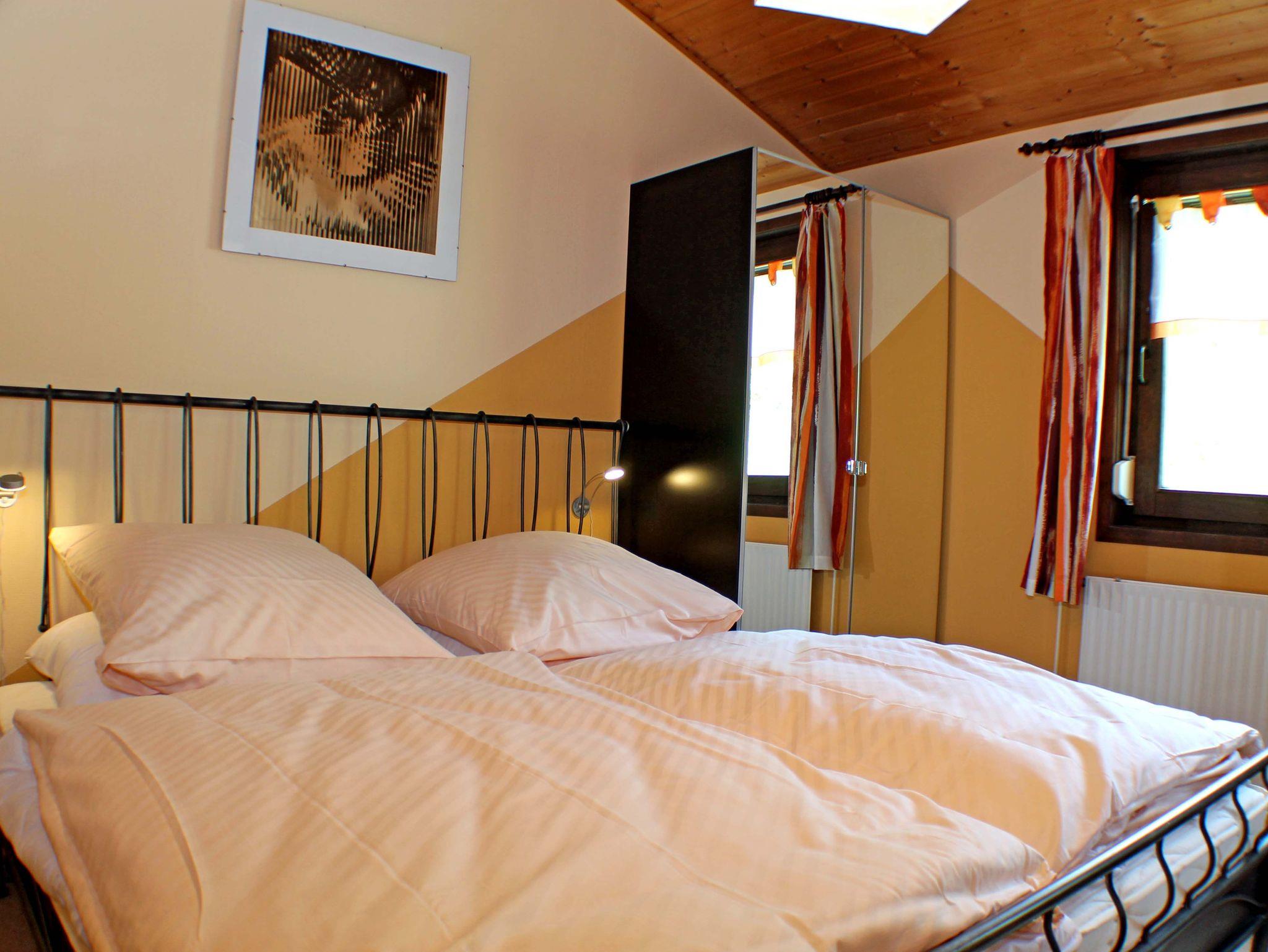 SCHLAFZIMMER 2: Romantisches Bett, funktioneller Schrank, Flat-TV; auf der Empore zwei zusätzliche Schlafplätze