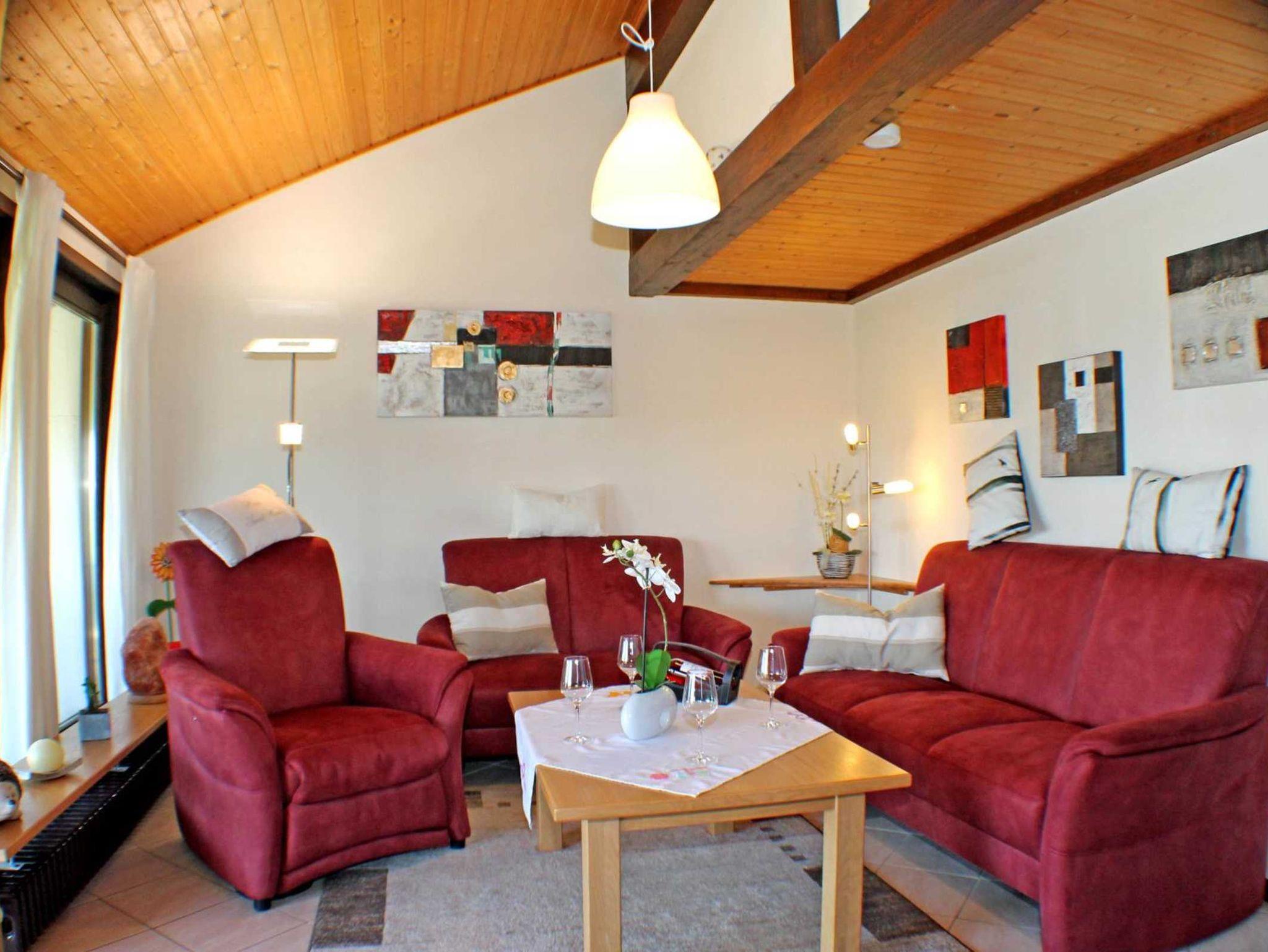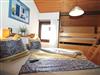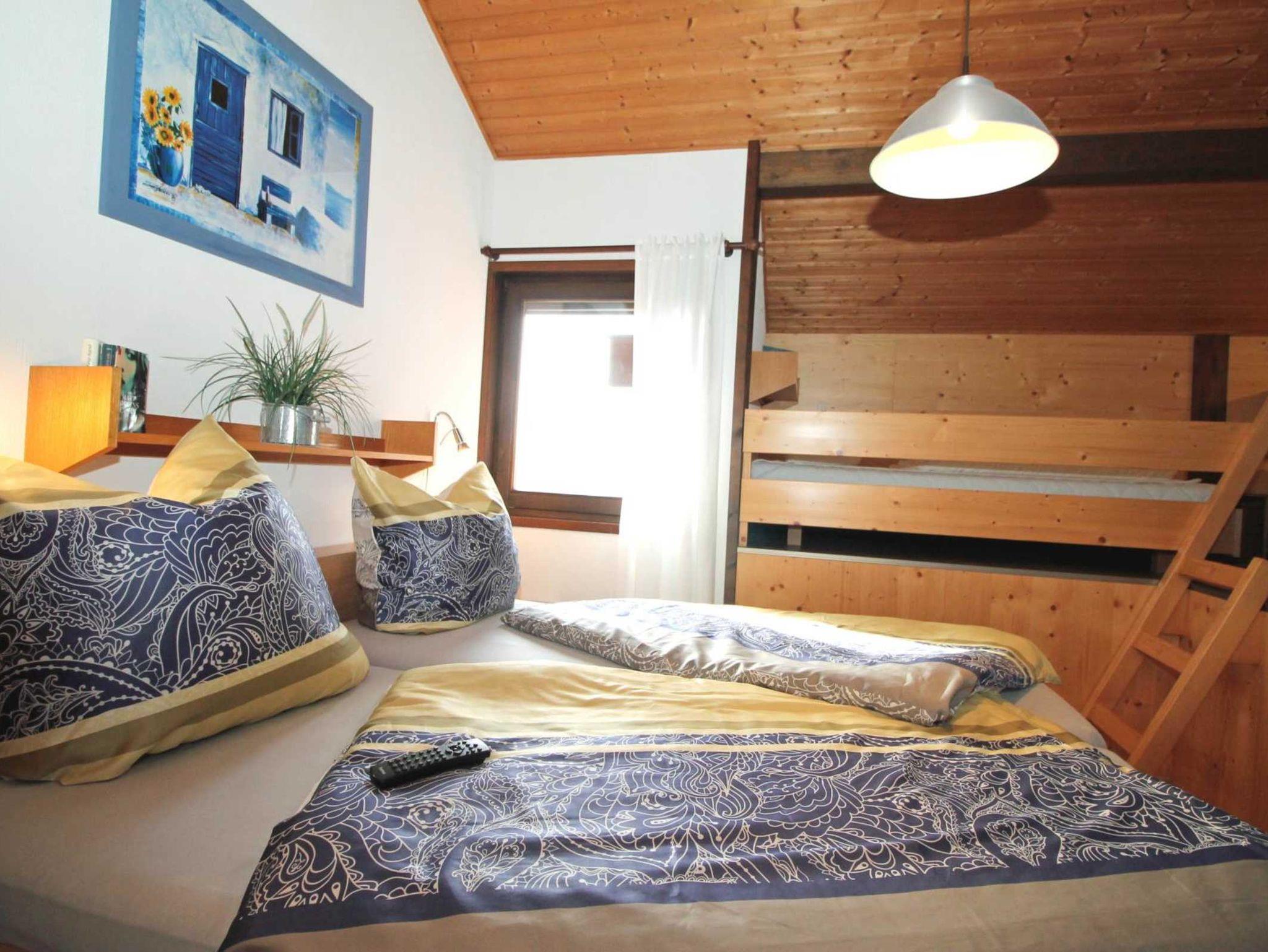Sie wohnen in einem 3-Zimmer-Ferienhaus, für bis zu 6 Personen, auf drei Ebenen, ca. 68 m². Das Haus verfügt über zwei Schlafzimmer mit Doppelbett. In einem Schlafzimmer befinden sich zusätzlich zwei getrennte Betten auf einer Empore. In diesem Schlafzimmer ist ein zweiter Flachbildschirm angebracht. Die Schlafzimmer sind mit Rollläden ausgestattet.