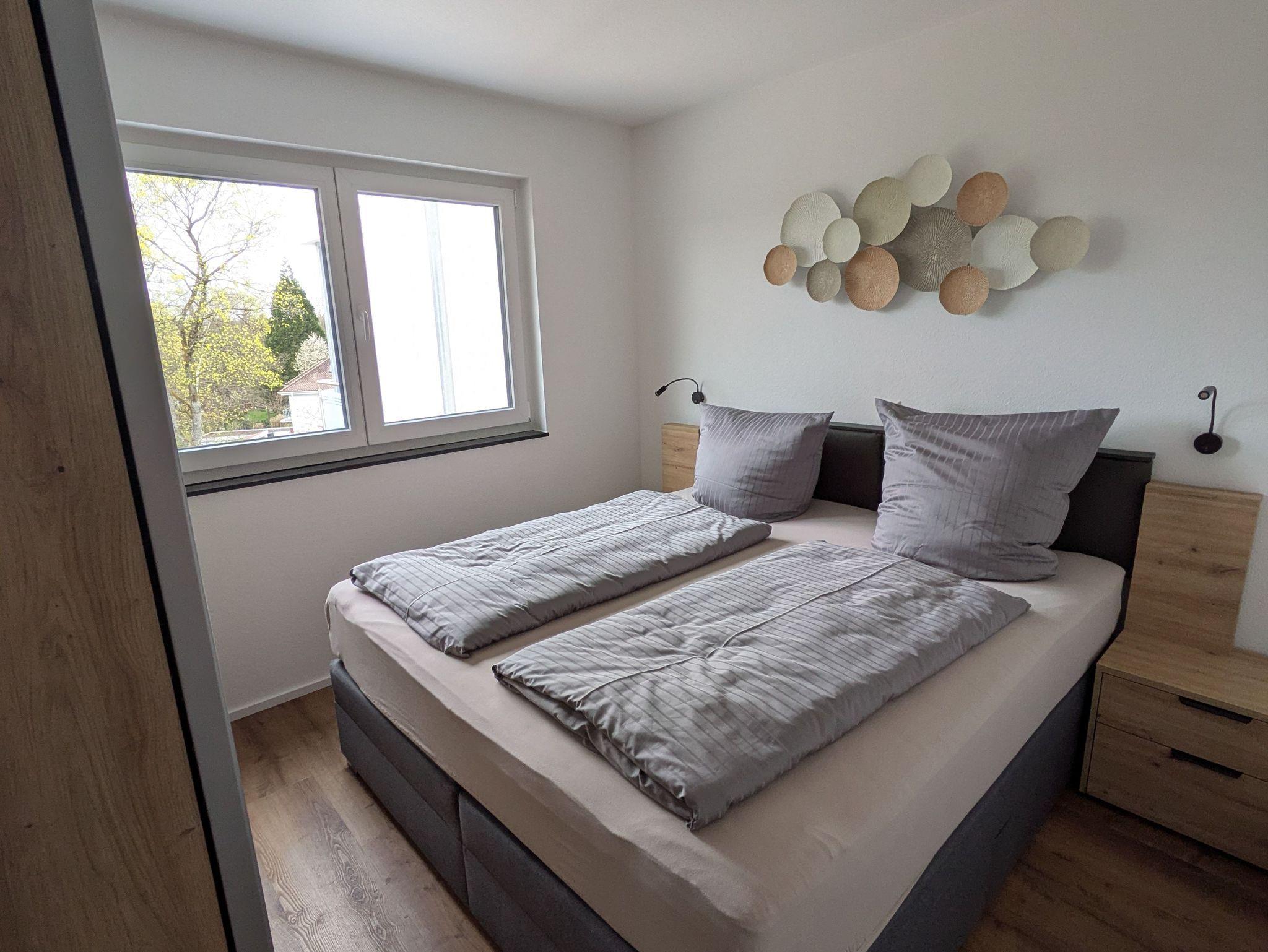 Willkommen in der Ferienwohnung Sonnengruß. Hier erwartet Sie eine Mischung aus modernem Komfort und entspannter Wohlfühlatmosphäre. Die Wohnung ist mit allem ausgestattet, was Sie für einen angenehmen Aufenthalt benötigen. Sie ist ideal für Paare, bietet aber dank eines komfortablen Schafsofas (140x200) Platz für bis zu 4 Personen. Im separaten Schlafzimmer befindet sich ein Boxspringbett (180x200) mit einer Taschenfederkernmatratze. Die moderne Küche ist im Wohn- Essbereich integriert. Sie ist mit einem Geschirrspüler, Kochfeld, Backofen, Toaster, Wasserkocher, Kaffeemaschine und Backofen ausgestattet. Der Kühlschrank hat ein Gefrierfach. Spül- und Geschirrtücher sind vorhanden.