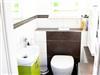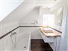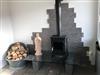 Fussbodenheizung im Badezimmer und kleiner Kamin im Wohnzimmer.