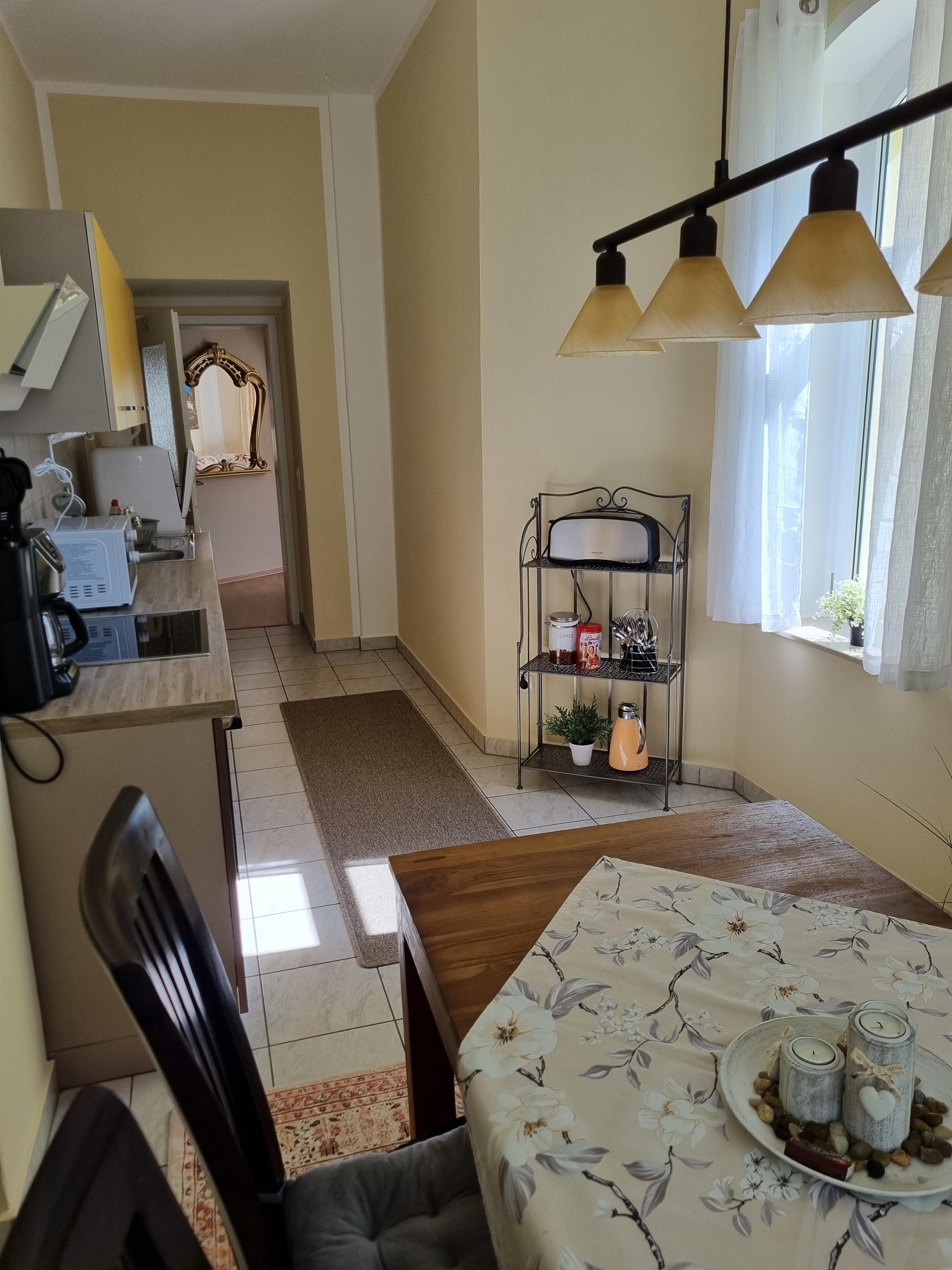 Die Wohnung ist liebevoll eingerichtet und wir hoffen, dass Sie alles vorfinden, was Sie benötigen. Sie bietet Platz für bis zu vier Personen und verfügt über eine voll ausgestattete Küche, ein komfortables Wohnzimmer und ein geräumiges Schlafzimmer. Sie befindet sich im Hochparterre, Sie müssen nur 6 Treppenstufen bewältigen.