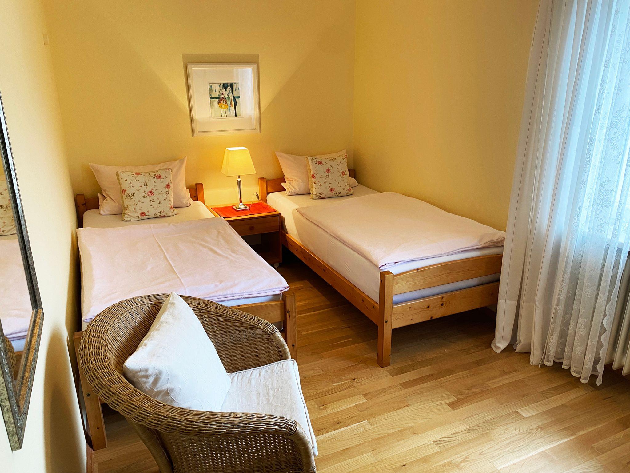 Sonnige, komfortable Wohnung, Wecker. Bad/WC, Telefon, Radio, SAT-TV-Anschluss und Südbalkon mit Balkonmöbel, Kühlschrank mit Tiefkühlfach. Inkl. Handtücher, Tisch- und Bettwäsche sowie Endreinigung. Parkplatz am Haus.