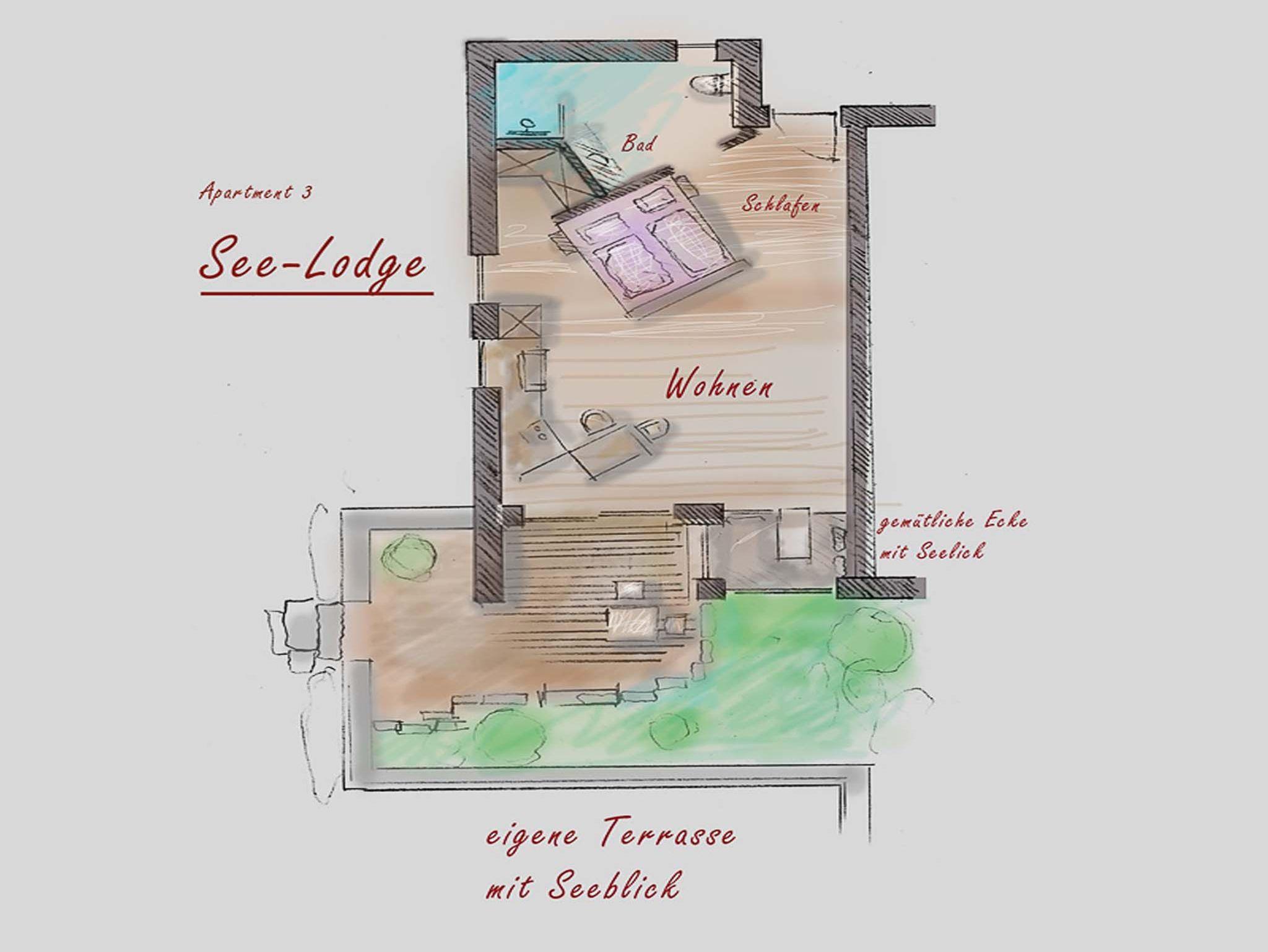 Lebensart am See, See-Lodge, 54 qm Erdgeschoss, kombinierter Wohn-/Schlafraum