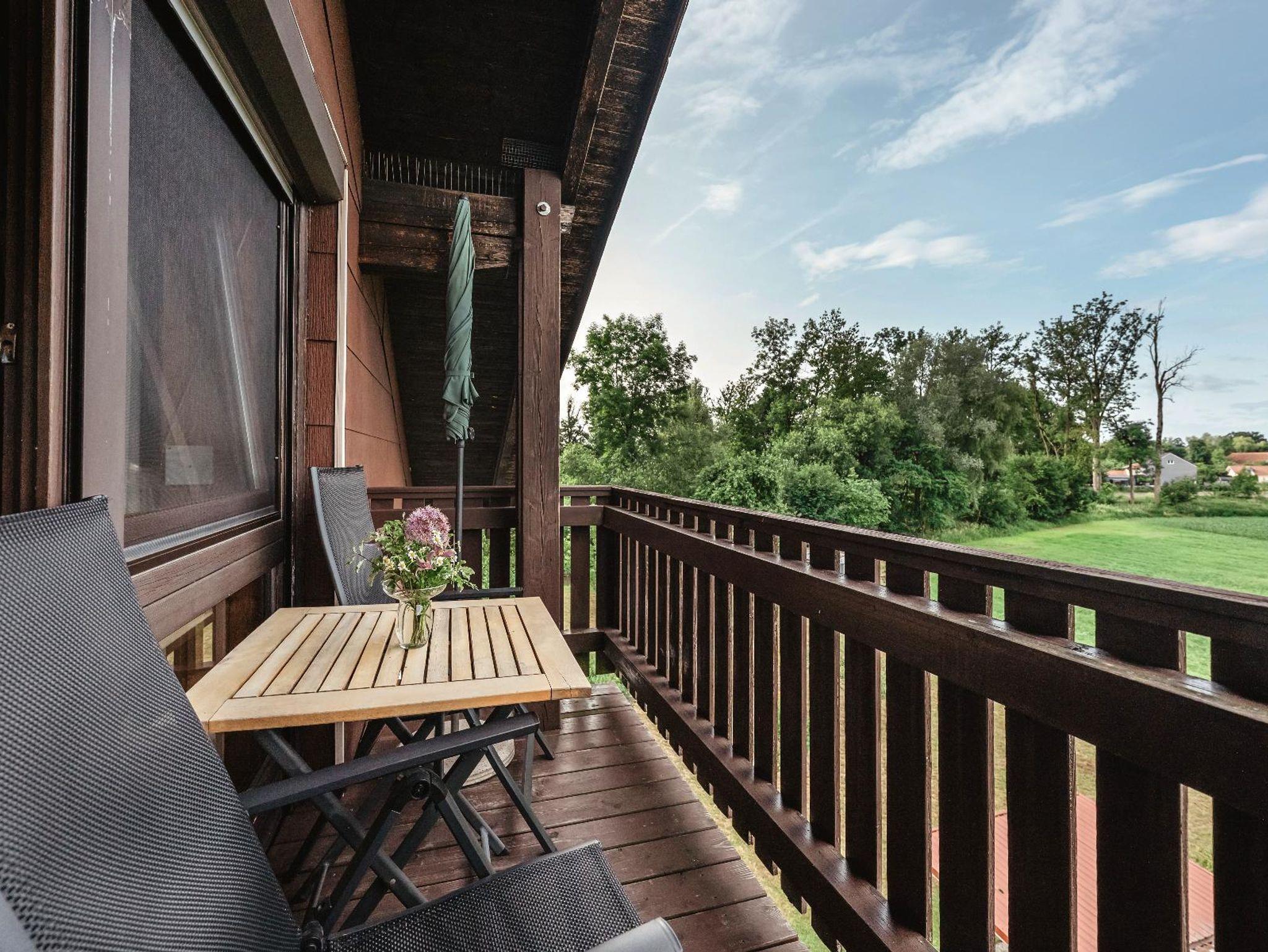 Die wohnliche 2-Zimmer-Mansardenwohnung im 2.OG verfügt über einen Balkon Richtung Westen mit Sitzgelegenheit. Die Einrichtung umfasst neben Bad mit Badewanne und WC, eine Wohnküche mit Küchenzeile, Tisch und Stühle, Kühlschrank inkl. Gefrierfach, Koch- und Speisegeschirr, sowie eine Kaffeemaschine, einen Wasserkocher und einen Toaster. Der Schlafraum ist mit Teppichboden, einem Doppelbett und Einbauschrank ausgestattet. Im Wohnzimmer befindet sich eine Couch, SAT Farb-TV, Radio, ebenfalls Teppichboden und ein feststehendes 3. Bett, das besonders wegen der Möglichkeit getrennt zu schlafen geschätzt wird. Bettwäsche, Hand- und Geschirrtücher sind vorhanden. Es ist ein Garagenstellplatz vorhanden.