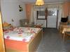 Wohn-Schlafraum mit feststehenden Betten, Bettwäsche, SAT-TV und Telefon
