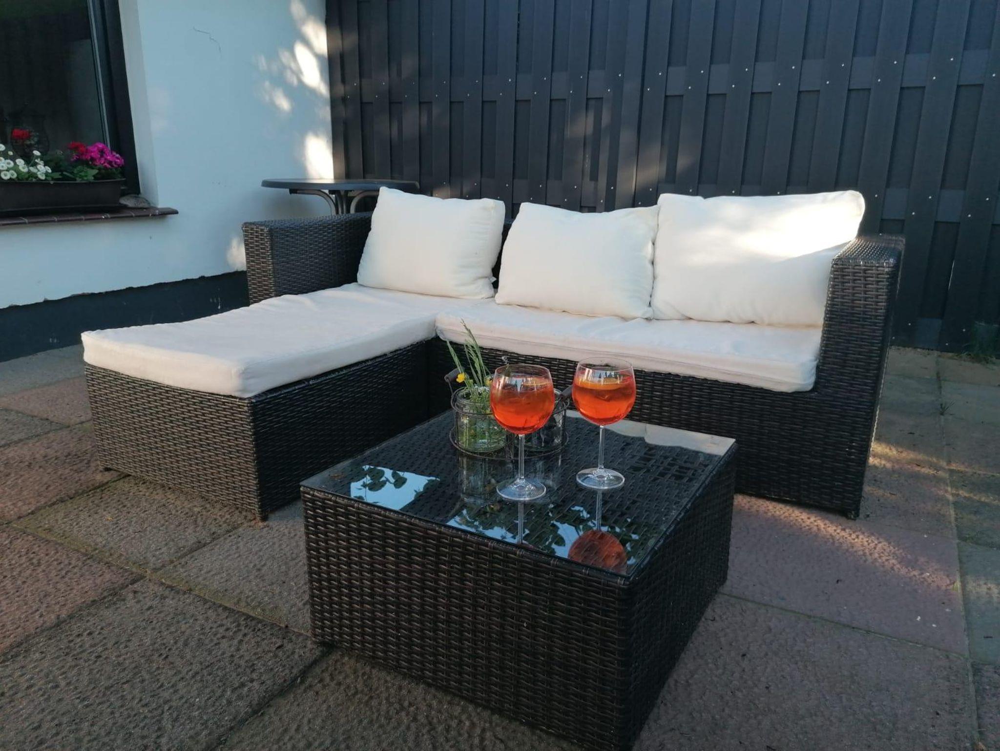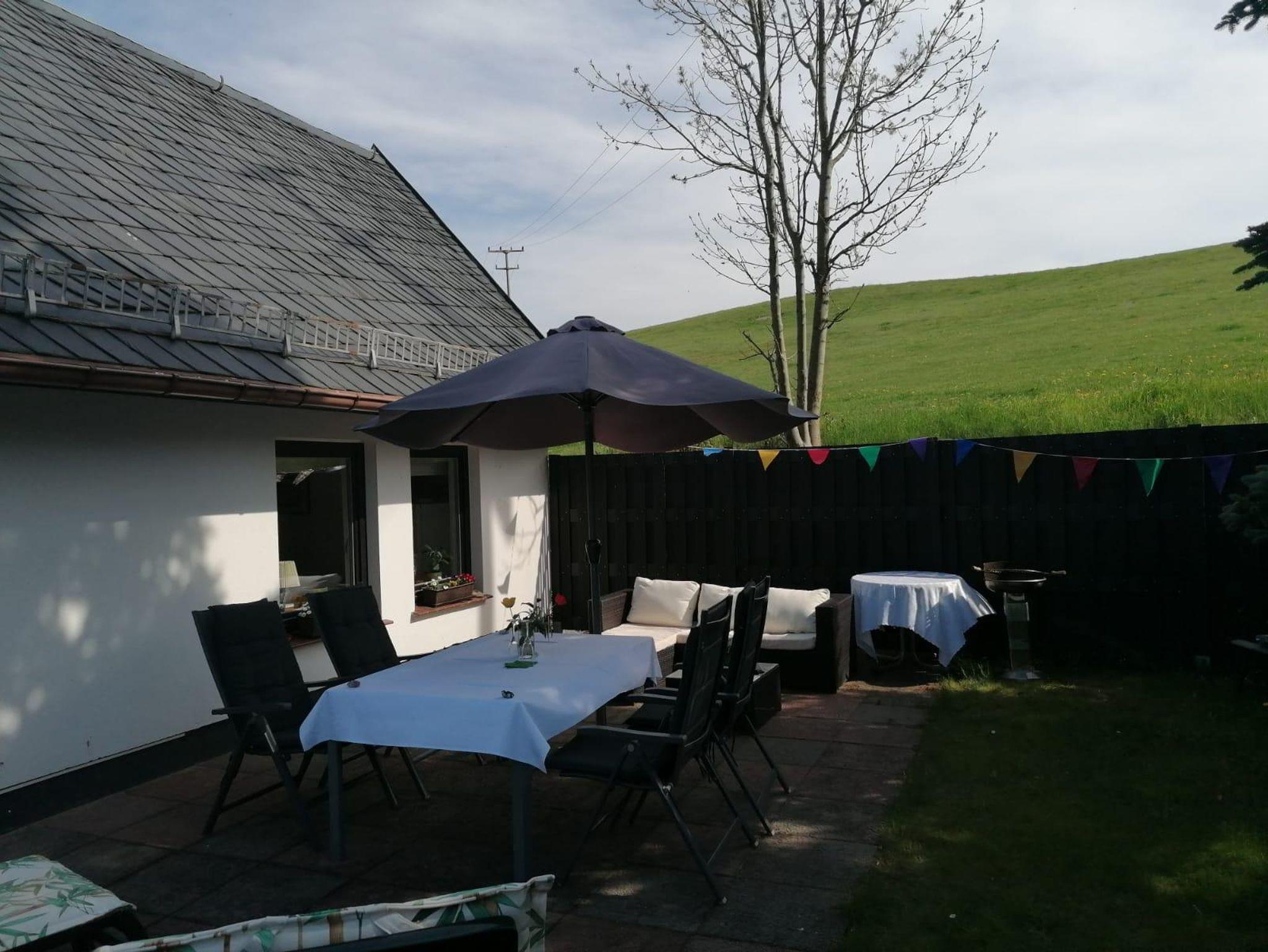 Am Haus steht eine gemütliche Terrasse mit Gartenmöbel und Grillecke zur Verfügung.
