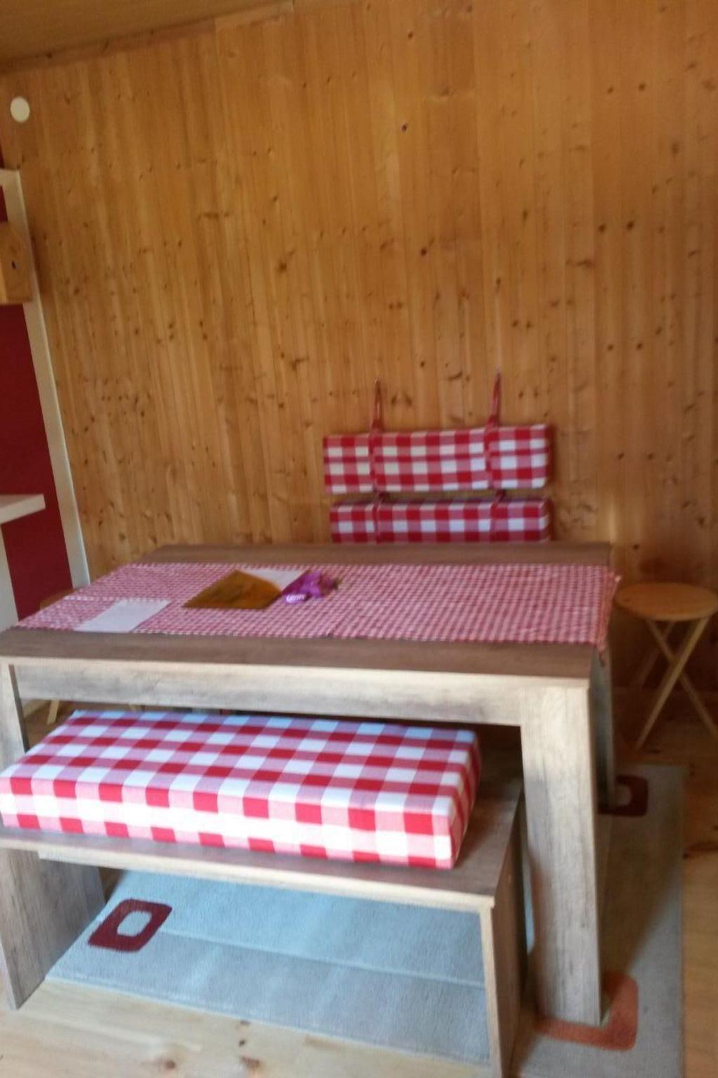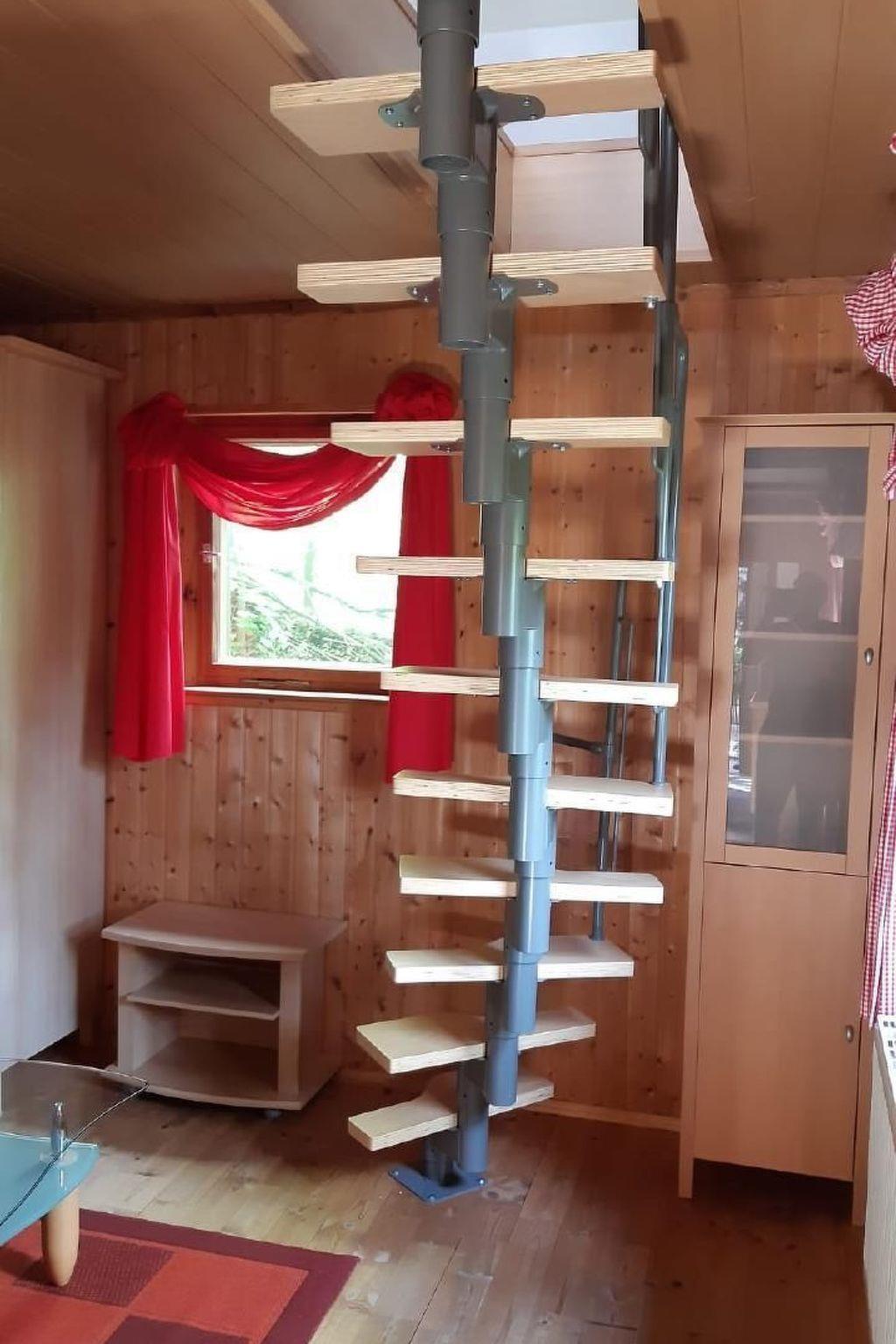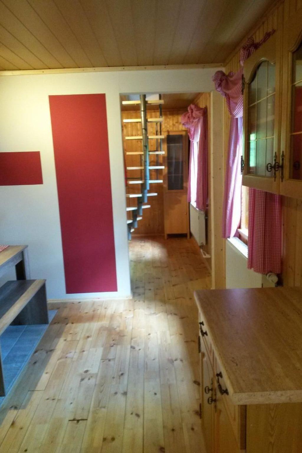 Im Inneren des Bungalows erwartet Sie eine vollausgestattete Ess/Wohnküche mit modernen Annehmlichkeiten wie Backofen, Mikrowelle sowie einer Kühl- und Gefrierkombination, die ausreichend Stauraum für kulinarische Abenteuer bietet. Die Mahlzeiten können an einer modernen Essecke genossen werden, während das separate Wohnzimmer mit seiner bequemen Couch zum Entspannen und Fernsehen einlädt. Über eine gewendelte Holztreppe gelangen Sie ins gemütliche Schlafzimmer im Dachgeschoss, welches nicht nur ein Doppelbett, sondern auch zusätzliche Schlafmöglichkeiten bietet. Für unsere kleinen Gäste stehen zwei Jugendbetten, auf Anfrage sind ein Kinderreisebett mit Wickelauflage, ein Babyphon sowie ein Hochstuhl verfügbar.