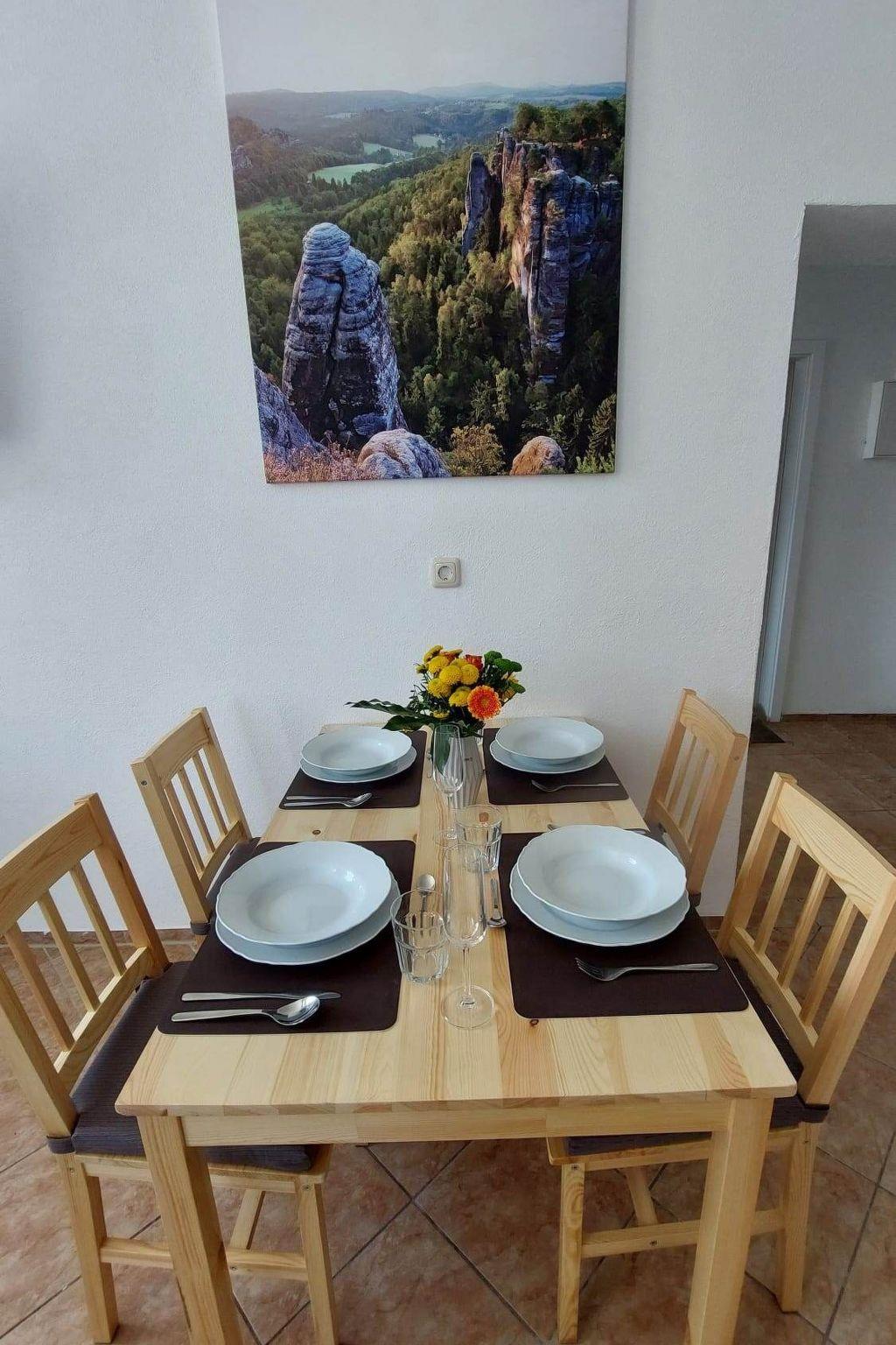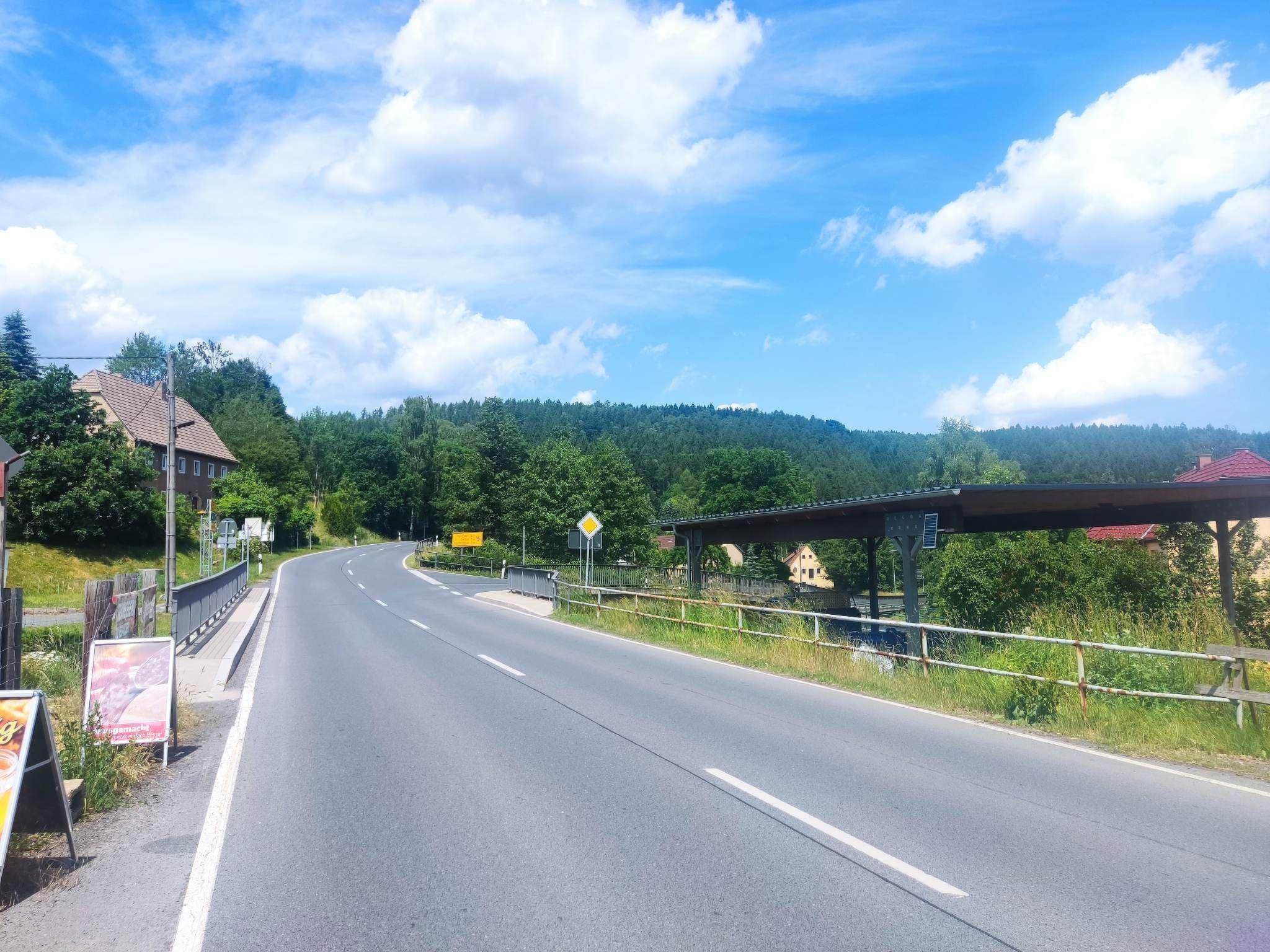 Direkt am Grundstück führen Wanderwege entlang, die zu ausgiebigen Spaziergängen einladen. Der Nationalpark Sächsische Schweiz liegt 24 km vom Ferienhaus entfernt und das Panometer Dresden erreichen Sie nach 33 km. Der nächstgelegene Flughafen ist der ca. 50 km vom Hofladen entfernte Flughafen Dresden. In der näheren Umgebung ist das Besucherbergwerk "Marie-Louise-Stolln" mit dem unterirdischen See. Reizvoll im Gottleubatal an der Grenze zwischen Sächsischer Schweiz und Erzgebirge gelegen, bietet Bad Gottleuba-Berggießhübel einen guten Ausgangspunkt für Wanderausflüge in beide Regionen. Bis zum Stadtzentrum mit zahlreichen Einkaufsmöglichkeiten fahren Sie ca. 10 min. Mit dem Auto erreichen Sie die Grenze nach Tschechien in ca. 3 min, die Sächsische Schweiz und das Osterzgebirge jeweils in 30 – 60 min. Wanderer und Mountainbiker kommen in unserer Erzgebirgsregion voll auf ihre Kosten. Dabei bieten Touren auch auf dem benachbarten tschechischen Gebiet ungeahnte Möglichkeiten und wunderbare Rundblicke in und auf das Elbsandsteingebirge. Das Haus befindet sich direkt an der Haltestelle am Dorfplatz in Hellendorf.