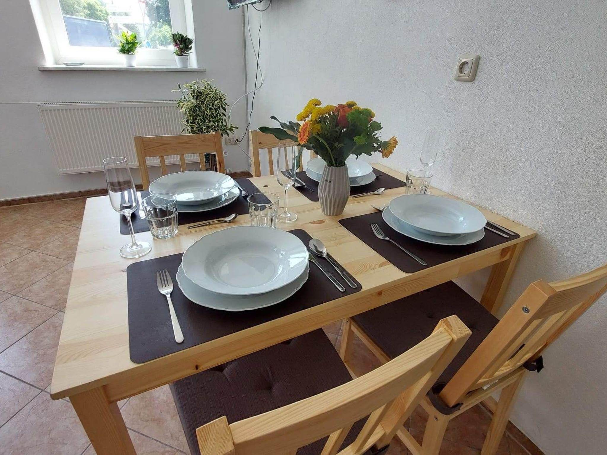 Im Garten können sich Groß und Klein entspannen oder beim Spielen im Sandkasten austoben. Unsere Ferienwohnung verfügt über ein kostenfreies WLAN und kostenfreie Privatparkplätze. Eine Grillhütte mit Sitzgelegenheiten und Grill laden zum Essen an der frischen Luft ein. Die moderne Ausstattung der Ferienwohnung und die Außenanlage laden zum Verweilen und Erholen ein.