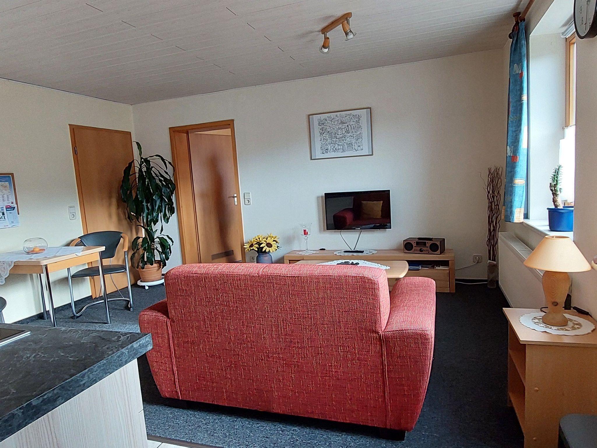 Das Wohnzimmer ist modern eingerichtet und verfügt über eine Sat-TV Anlage