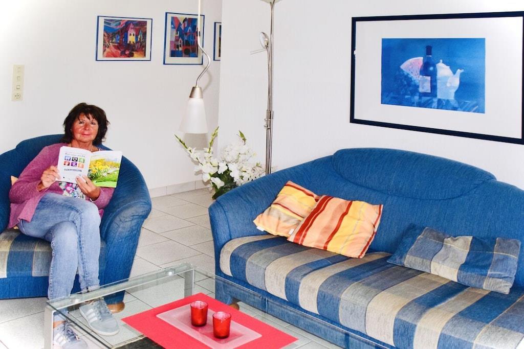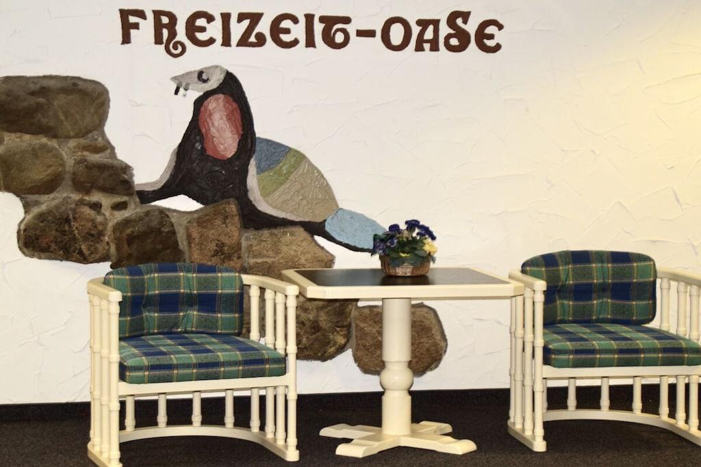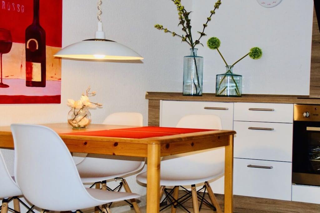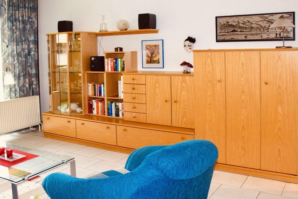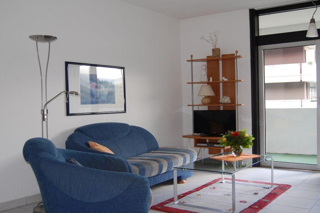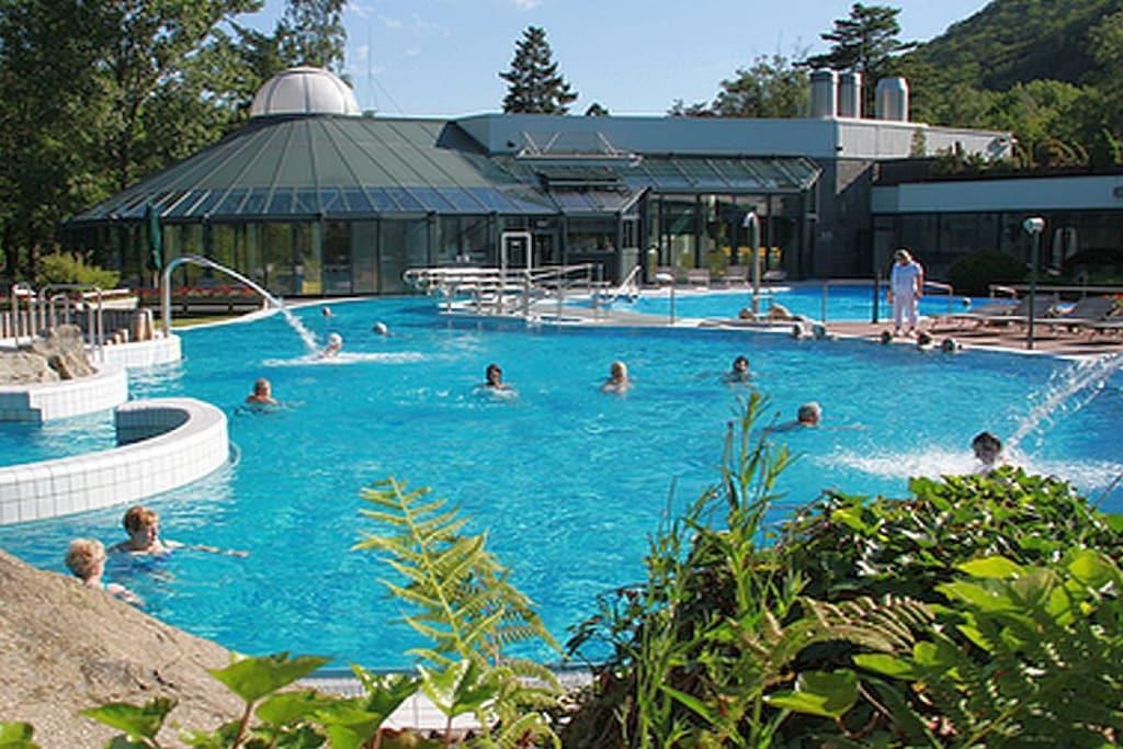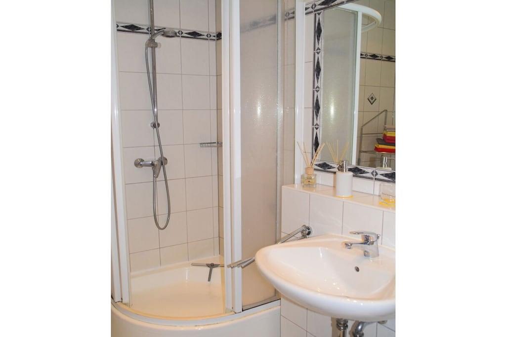 Unsere Ferienwohnung ist sehr ruhig und doch zentral gelegen. Sie ist 52 qm groß und mit Wohn-, Schlafzimmer sowie Bad und großer Terrasse hell, modern und zugleich gemütlich eingerichtet. Platz ist für 2 - 3 Personen. Das Wohnzimmer besticht durch eine komfortable Sitzgruppe sowie weitere Annehmlichkeiten wie Kabel-TV, DVD-Player und eine Stereoanlage. Angegliedert finden Sie den voll ausgestatteten Küchenbereich mit Einbauküche (Geschirrspüler, Backofen, vier Cerankochfeldern) und gemütlicher Essecke. Der große Balkon bietet Ihnen aus der 6. Etage einen herrlichen Blick auf den Burgberg mit seiner Seilbahn und die umliegenden Wälder. Von der Ferienwohnung aus können Sie mit dem Aufzug im Bademantel zum großzügigen (10 m x 20 m) Hallenschwimmbad gelangen. Das Wasser ist wohltuend auf 28° temperiert. Angeschlossen finden Sie einen Fitnessraum sowie einen Saunabereich mit Finn- (85°) und Kräutersauna (65°) und einen großen Ruheraum. Die Nutzung des Freizeitbereiches ist, soweit geöffnet, täglich möglich und für unsere Gäste kostenfrei.