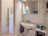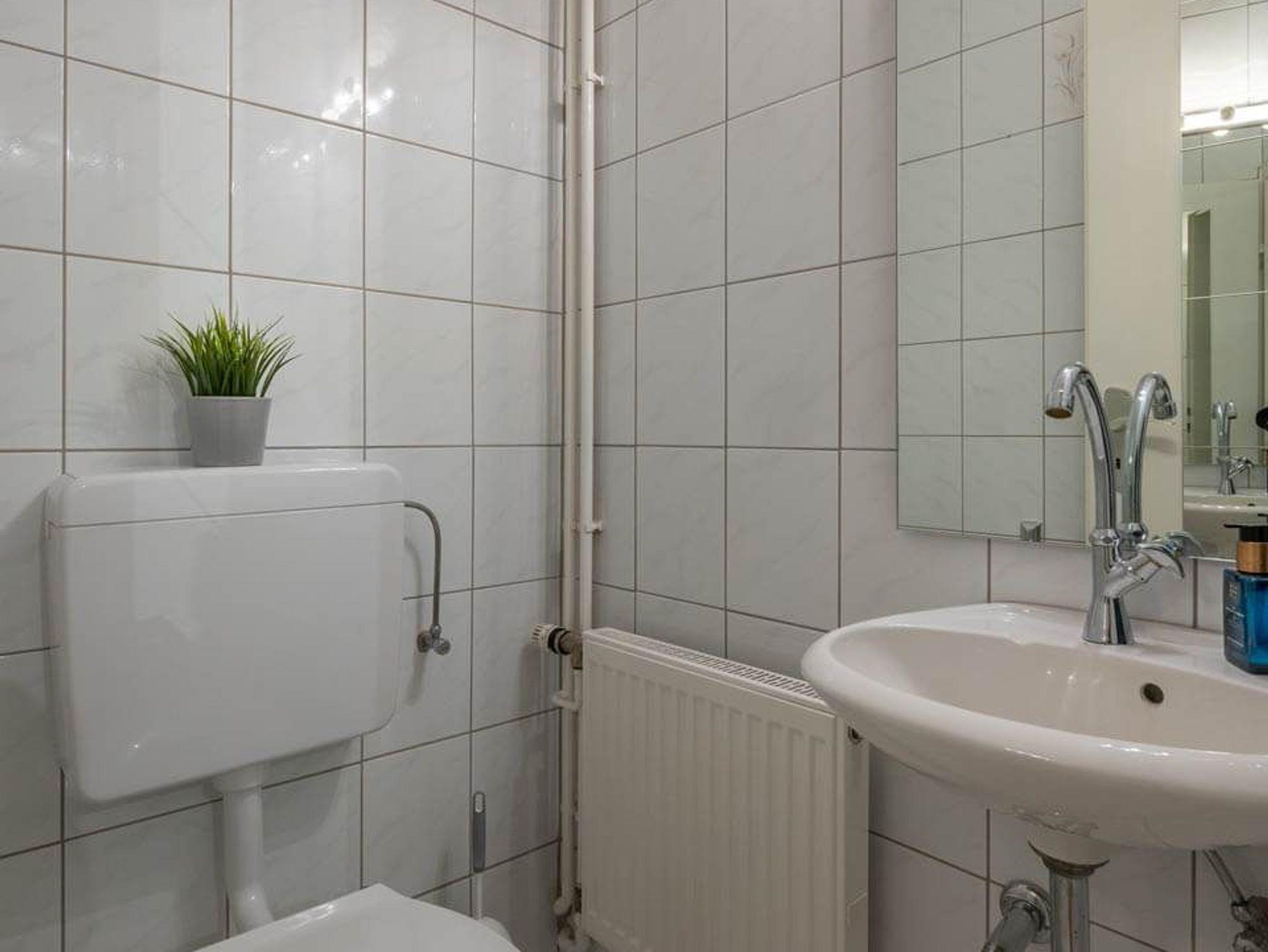 Das funktionale Duschbad mit Föhn und die separate Toilette in schlichtem weiß, runden das Bild ab.