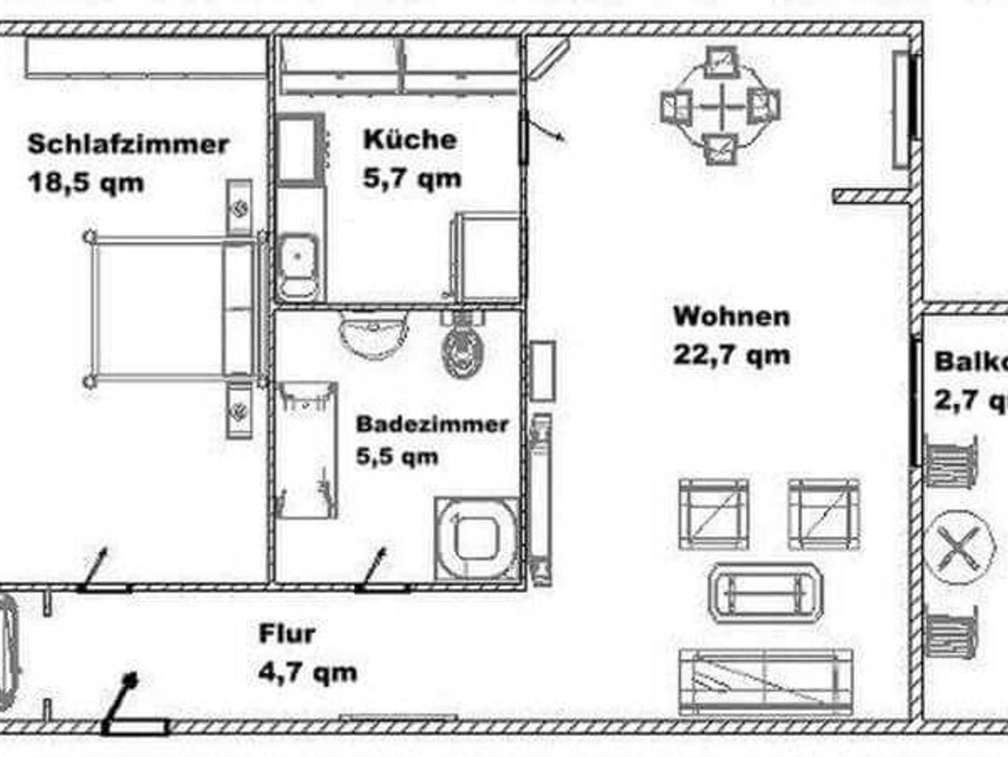 Wohnfläche 60qm, 2-Zimmer, Hochparterre