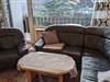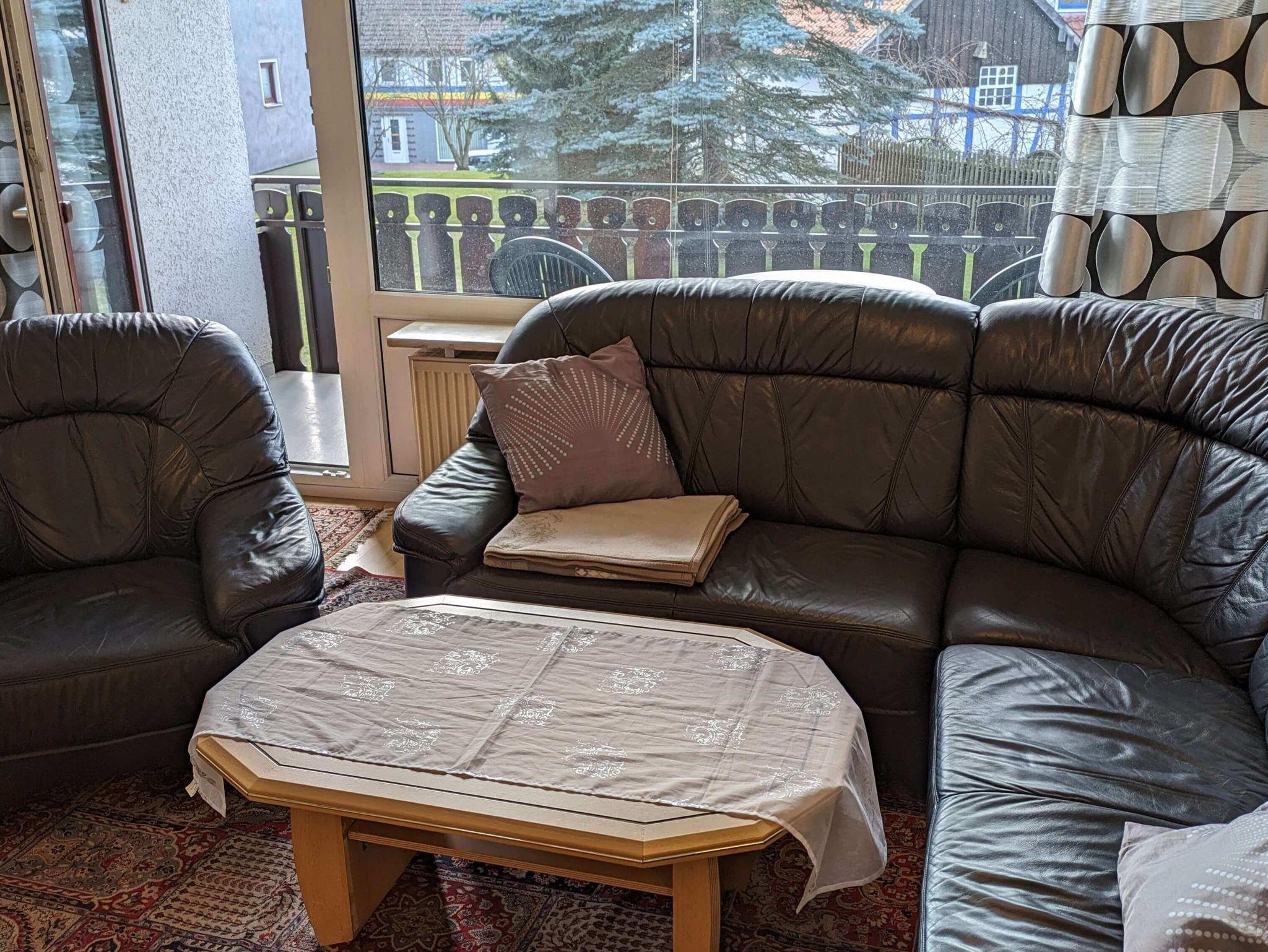 Wohnzimmer mit Leder-Polstergarnitur und zusätzlichem Schlafsofa