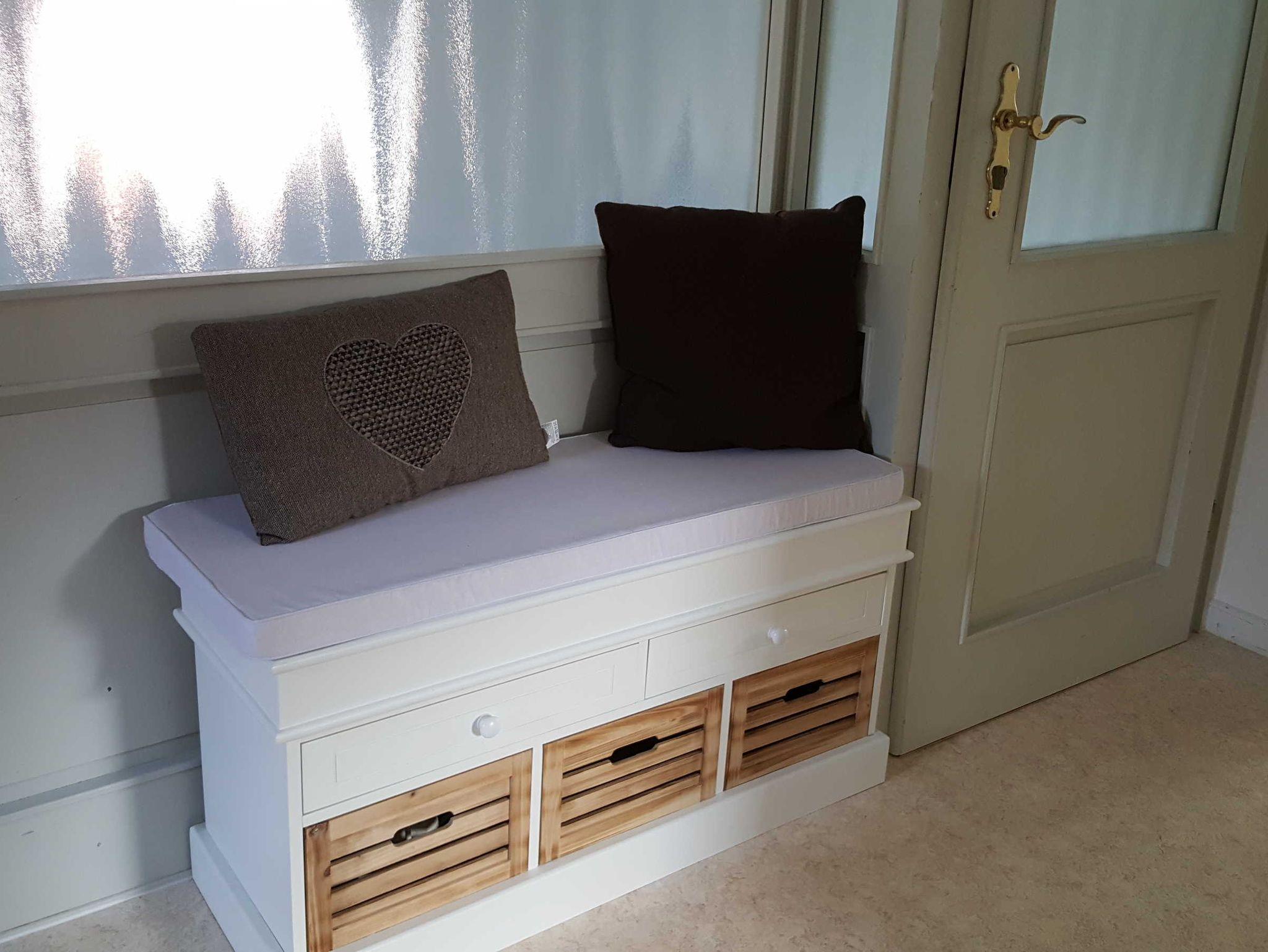 Die Wohnung teilt sich auf in ein gemütliches Wohnzimmer mit Dachschrägen, Schlafzimmer mit großem Doppelbett, Küche mit Dachschrägen, kleinem Duschbad und kleinem Flur. Die Wohnung ist hell, freundlich und modern eingerichtet. Im Wohnzimmer befindet sich eine weitere Schlafmöglichkeit durch ein gemütliches Schlafsofa. Die Wohnung liegt im Dachgeschoss und ist über 2 Treppen zu erreichen. Die Ferienwohnung ist eine Nichtraucherwohnung. Das Wohnzimmer ist mit einem Teppich ausgestattet, die restlichen Zimmer haben Laminatfußboden. Im Garten finden Sie Sitzgelegenheiten zur Nutzung.