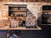 Im Zwischengeschoss befindet sich der westliche Wohnungseingang welcher direkt in den angrenzenden Stadtpark führt. Von hier aus gelangst du auch in das 1. Obergeschoss, wo sich die voll ausgestattete Küche inkl. kleinem Bartisch und Stühlen befindet.