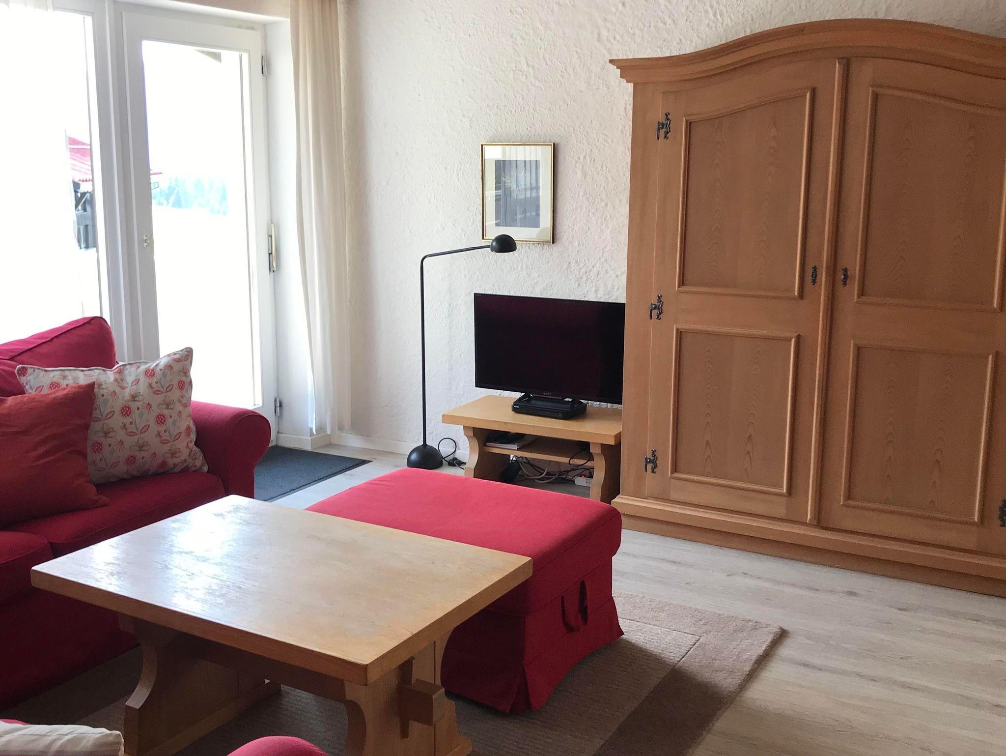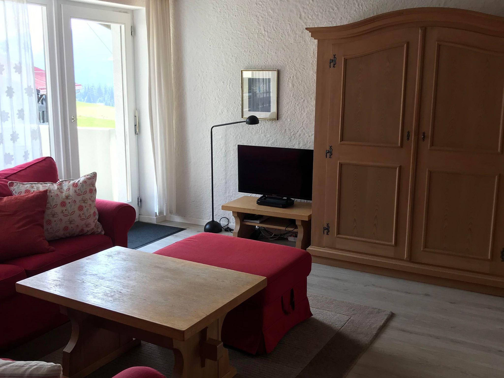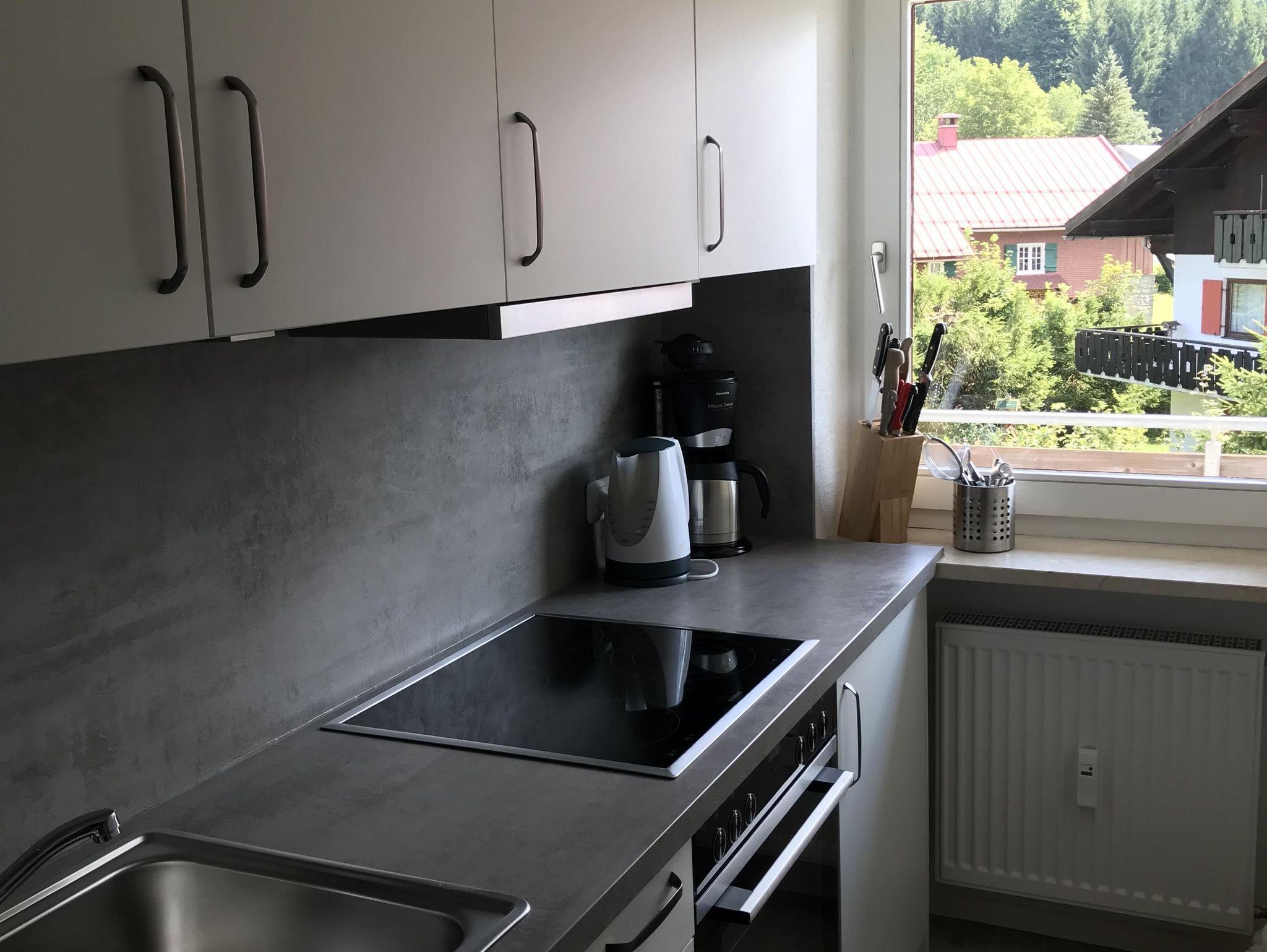 Ferienwohnung am südl. Ortsrand von Oberjoch mit schönen Ausblicken auf die Hausberge Iseler und Ornach. Balkon über die gesamte Länge der Wohnung. Großes Wohn-/Ess-/Schlafzimmer, mit gemütlicher Sitzgruppe, Geschirrschrank, Truhe, Regalen, Fernseher, DVD-Player; Essgruppe für bis zu 6 Personen; 2 Schlafcouchs 90x200cm, Kleiderschrank. Schlafzimmer mit Doppelbett und Kleiderschränken. Küche komplett eingerichtet inkl. Spülmaschine. Bad mit Badewanne und Baddusche. Separate Toilette.