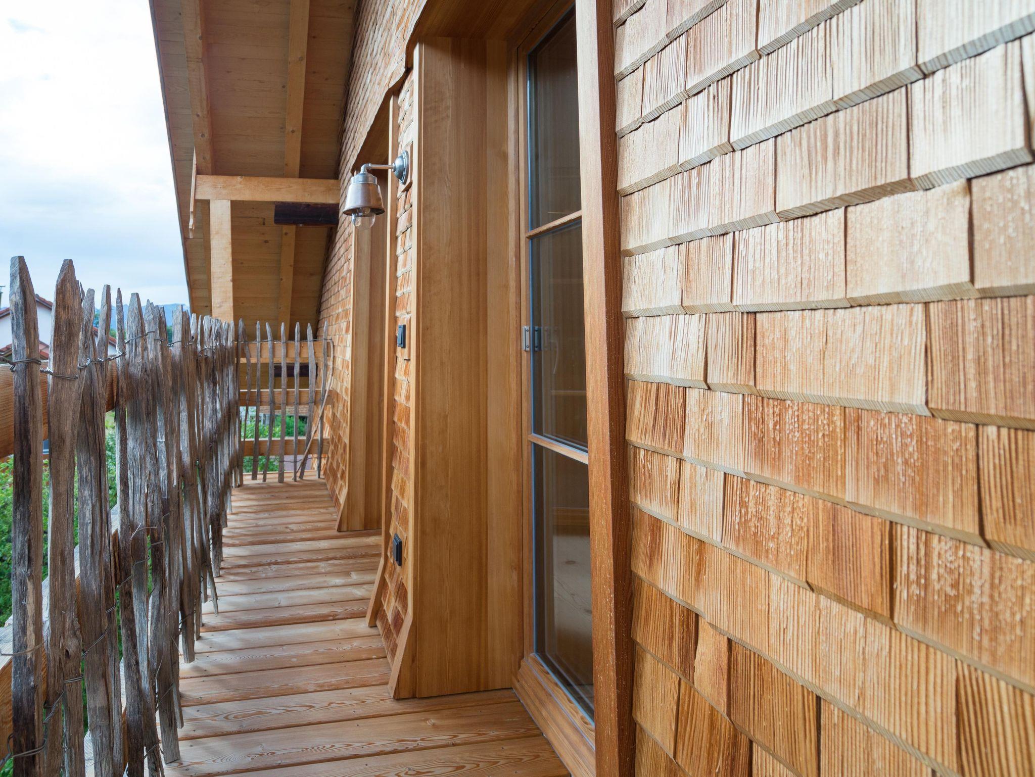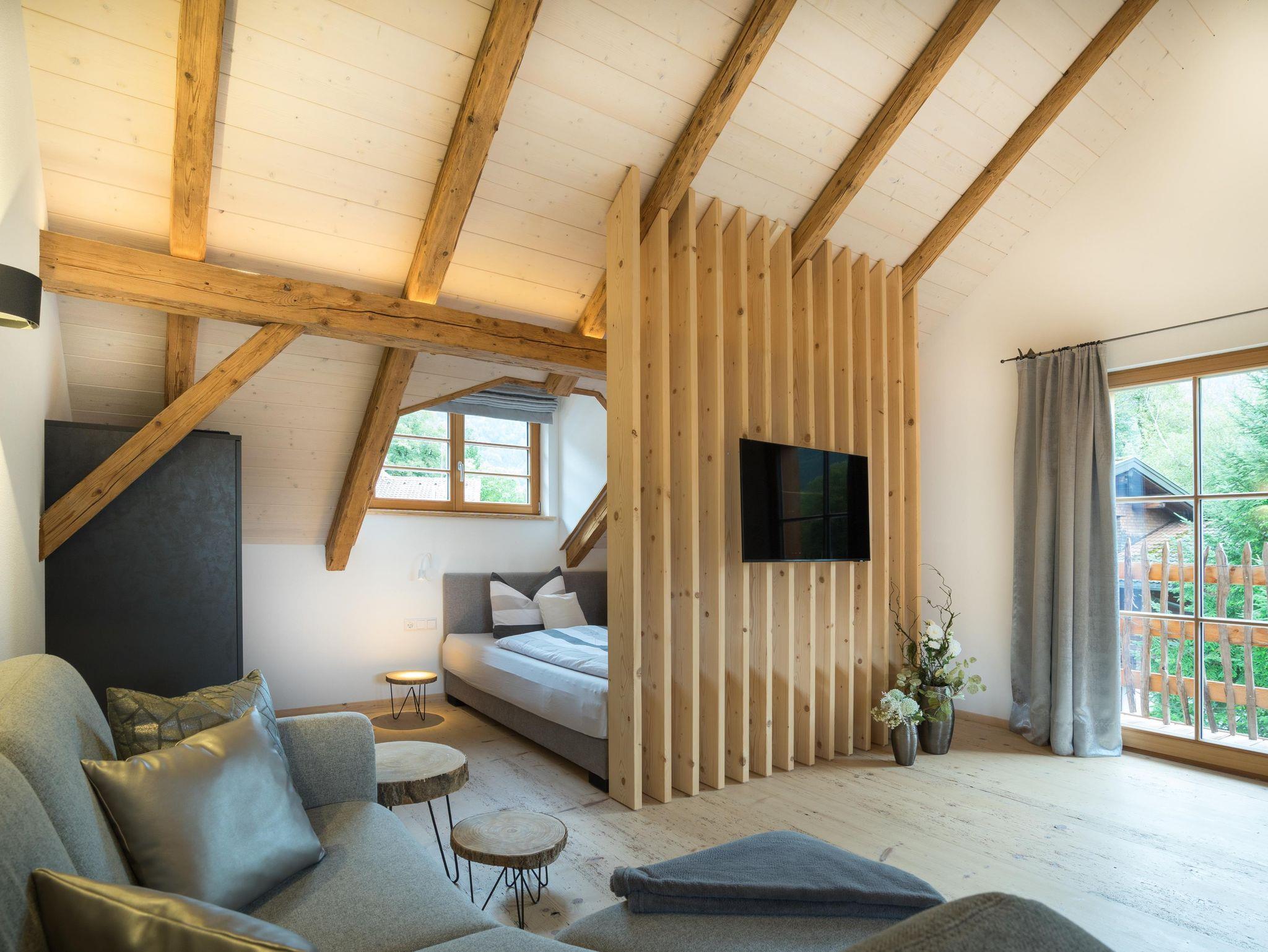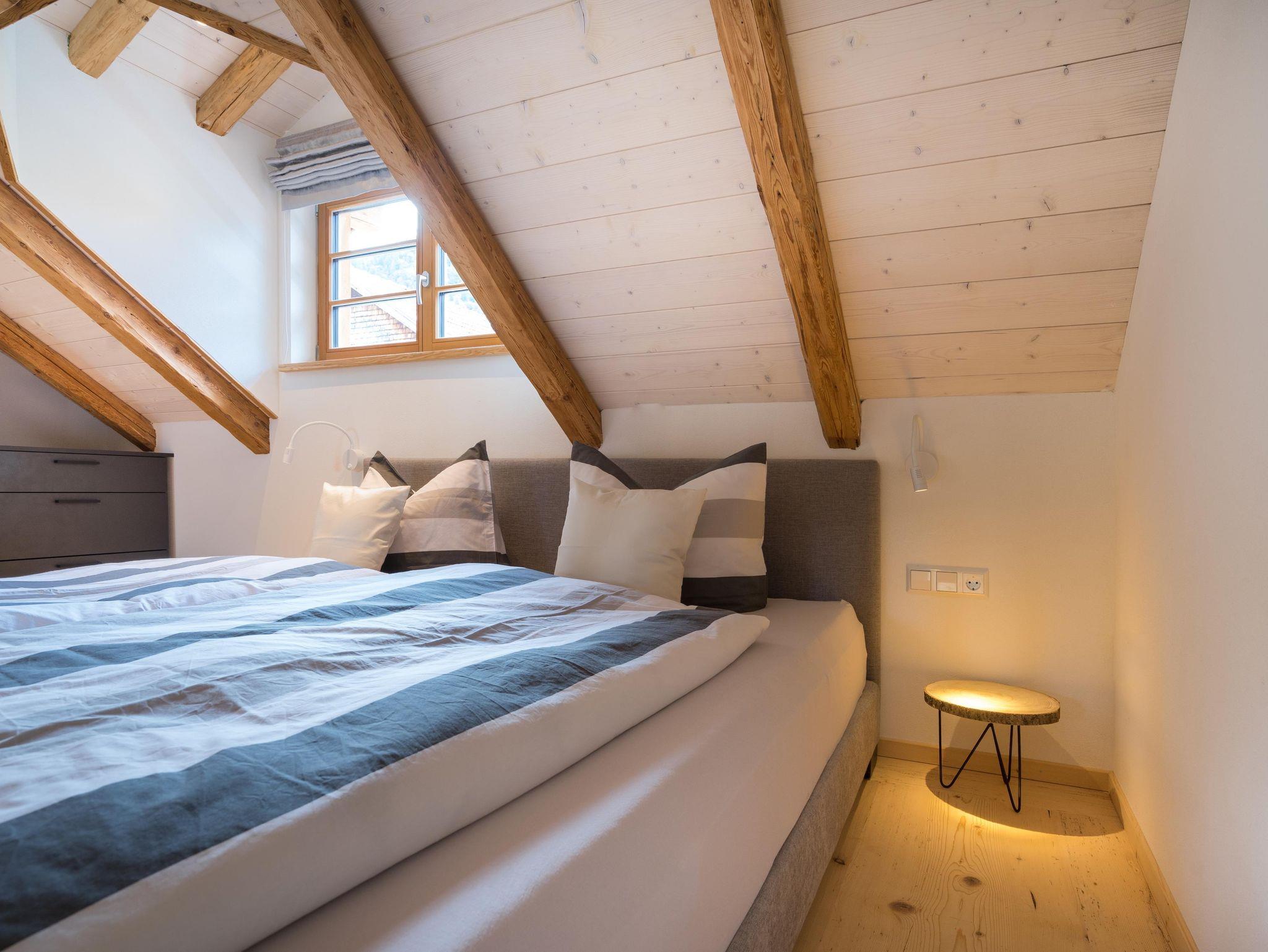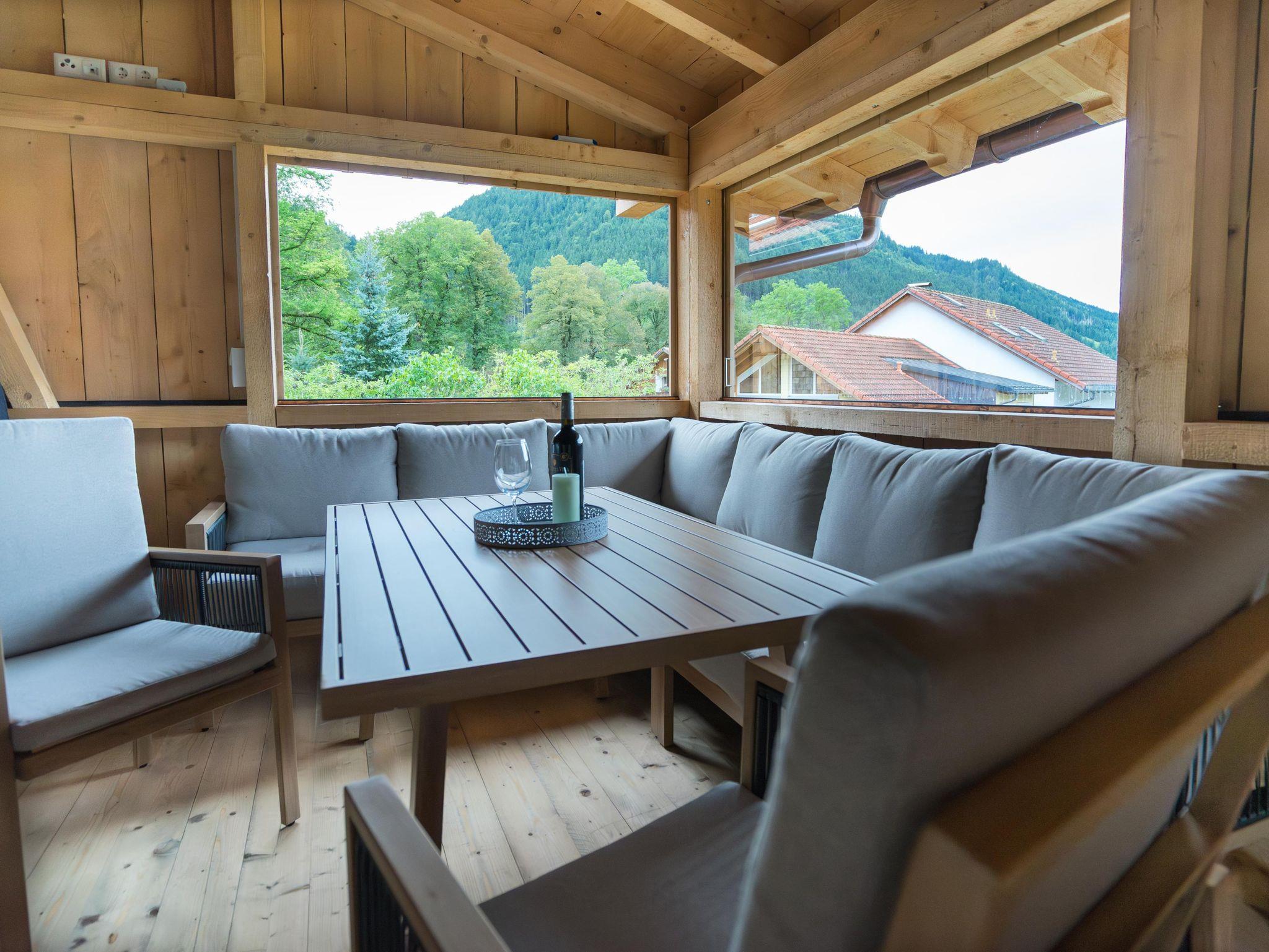 Unsere Dachgeschoss Wohnung ist mit allem ausgestattet, was Sie für einen komfortablen Aufenthalt benötigen. Der Wohn-Schlafraum verfügt über ein Doppelbett, einen Essbereich sowie eine voll ausgestattet Küche. Alles im schönen modernen Holzoptik-Design. Im Wohnbereich können Sie vom Sofa aus den Blick auf die Berge genießen. Eine überdachte Sitzlounge lädt zum Entspannen und Ausklingen des Abends ein.