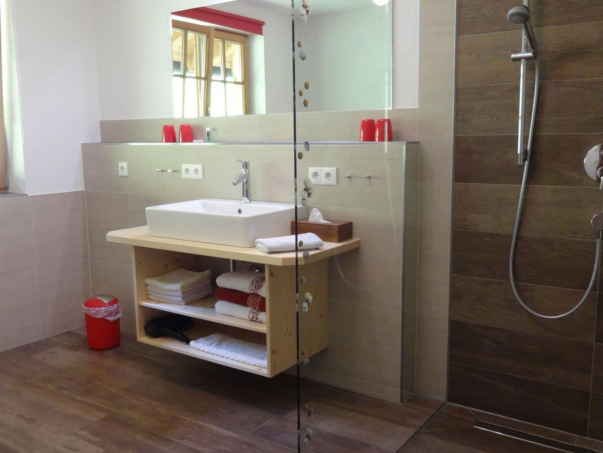 Geräumige Ferienwohnung, hochwertig und liebevoll vom Schreiner eingerichtet. Wohnessraum mit gemütlicher Eckbank und großer Küchenzeile, die komfortabel ausgestattet ist. Zwei Schlafzimmer, eines davon in Zirbenholz, für den gesunden Schlaf. Großes Bad mit begehbarer Dusche, WC extra. Mit etwas Glück erleben Sie unsere Kühe direkt bei Ihnen an der Terasse.