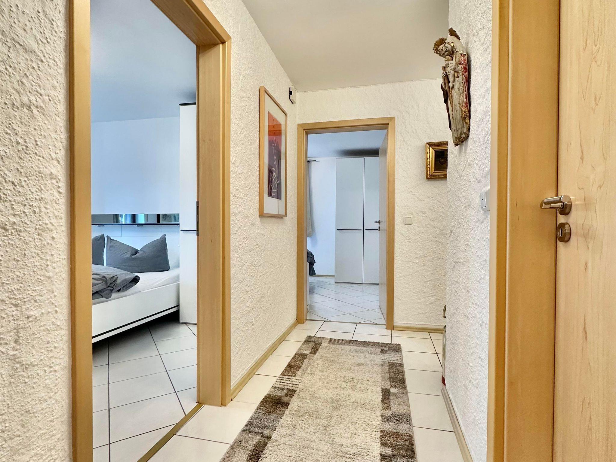 Die Wohnfläche von fast 70 m², verteilt sich auf 2 Schlafzimmer, Wohnzimmer mit Balkon sowie modernisierter Küche (voll ausgestattet inkl. Spülmaschine), Bad mit Dusche und WC sowie einem Gäste-WC.