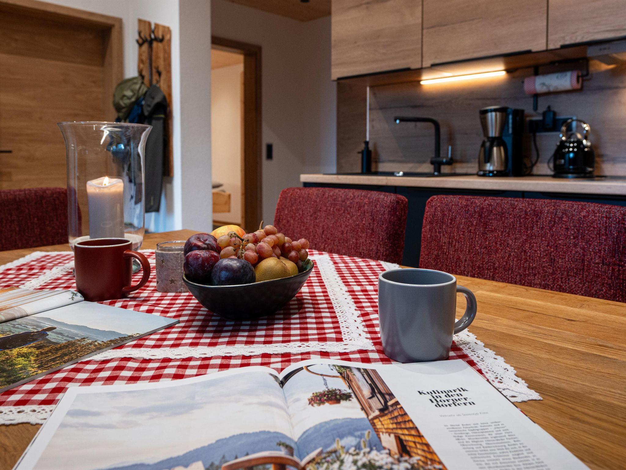 Im Chalet Hirschbach erlebt ihr das Beste aus beiden Welten. Mal nicht selbst Frühstück machen – setzt euch an den gedeckten Tisch, genießt frischen Kaffee, Allgäuer Käse und ofenwarme Brötchen vom Buffet, dazu den Blick auf Wiesen und Berge. Oder ihr bereitet euch euer Frühstück selbst zu – unsere voll ausgestatteten Küchen bieten alles, was ihr braucht, und vor allem gemütlichen Raum für gemeinsame Zeit.