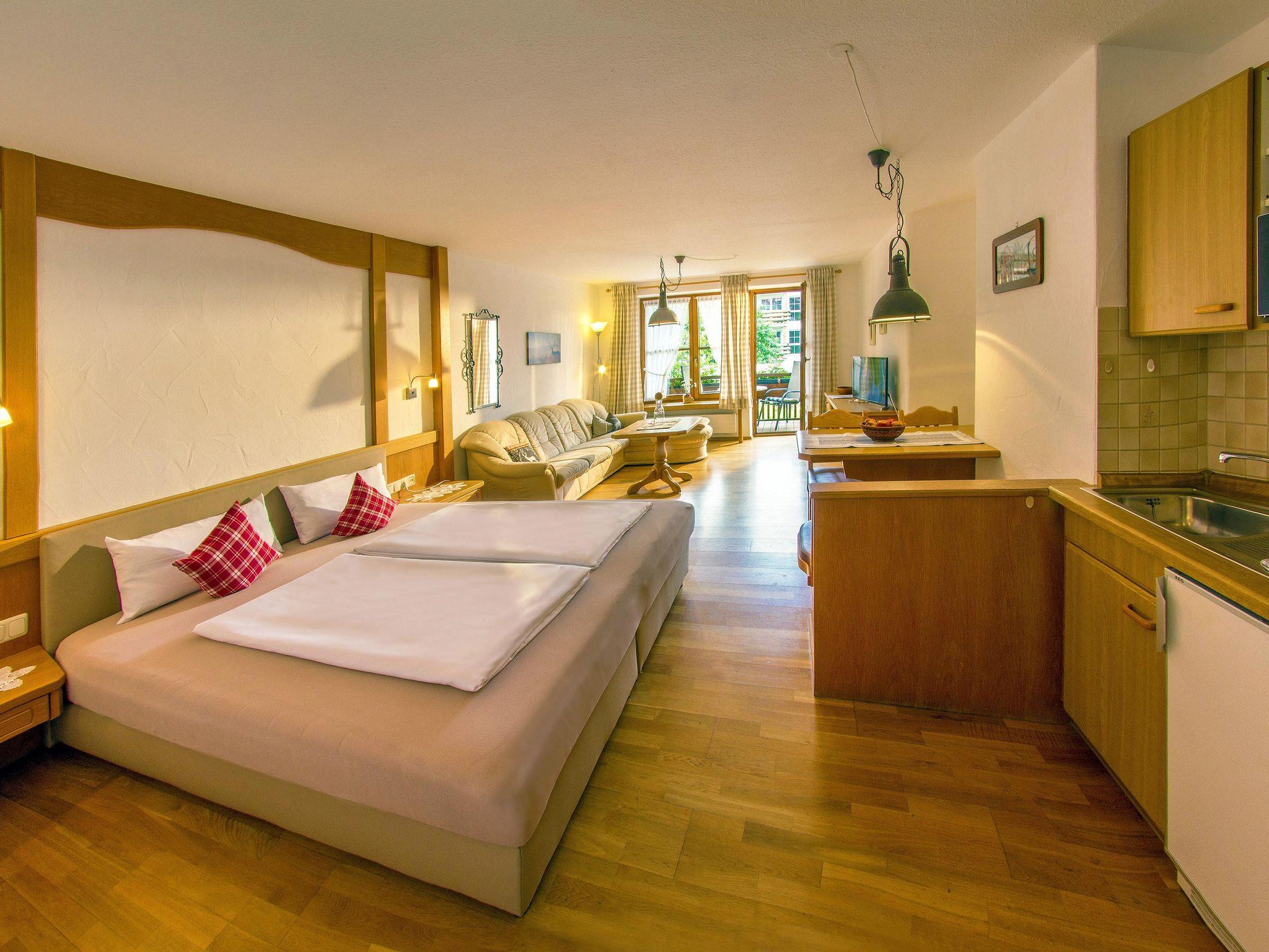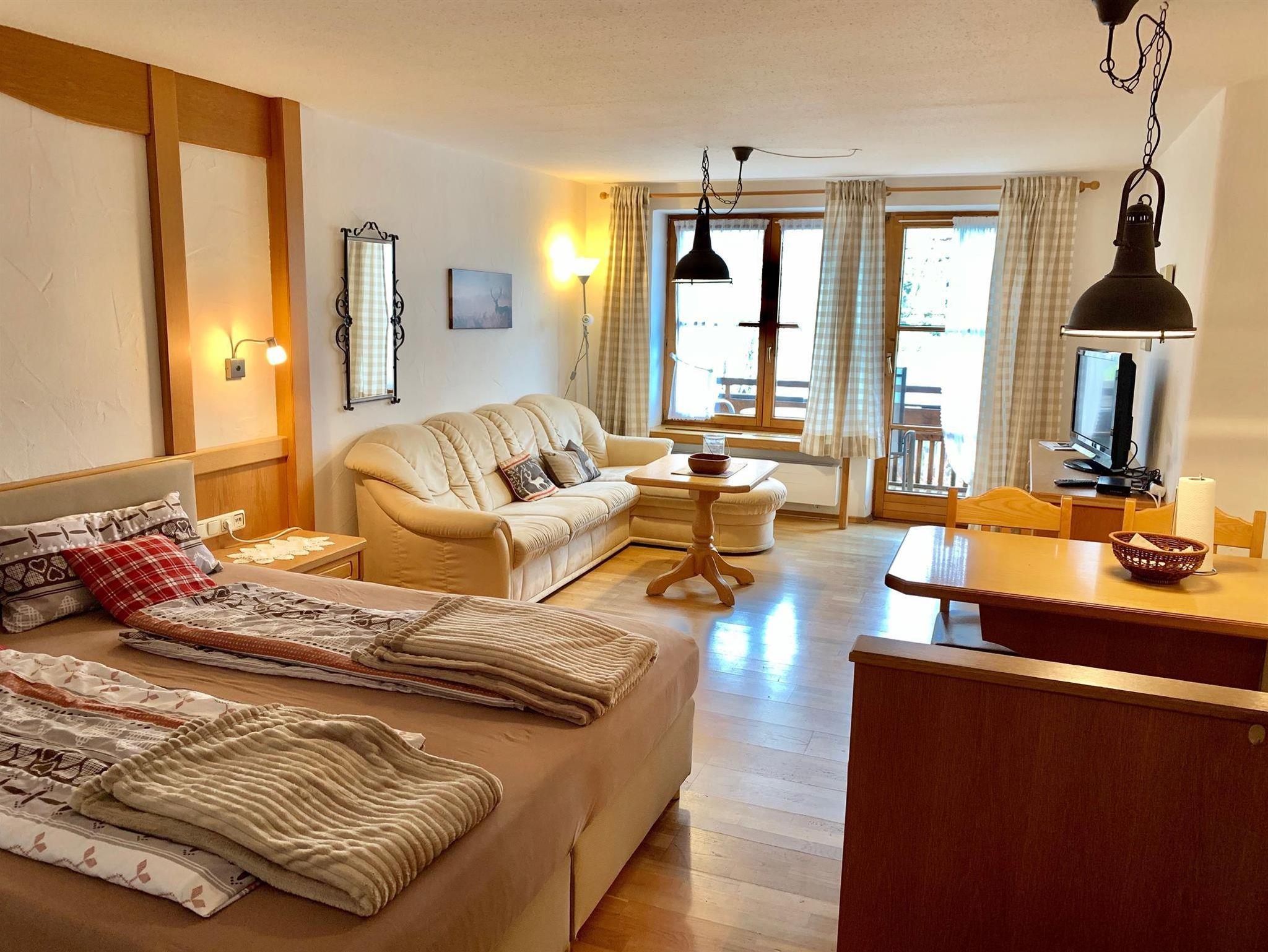 32m² großes, freundliches Apartement mit Südbalkon und direktem Bergblick. Die Wohnung enthält einen geräumigen Wohn,- Schlafbereich. Küchenzeile mit Essplatz ist selbsverständlich vorhanden. Dusche / WC, Flachbild TV, allergiegerechte Ausstattung, Nichtraucher.