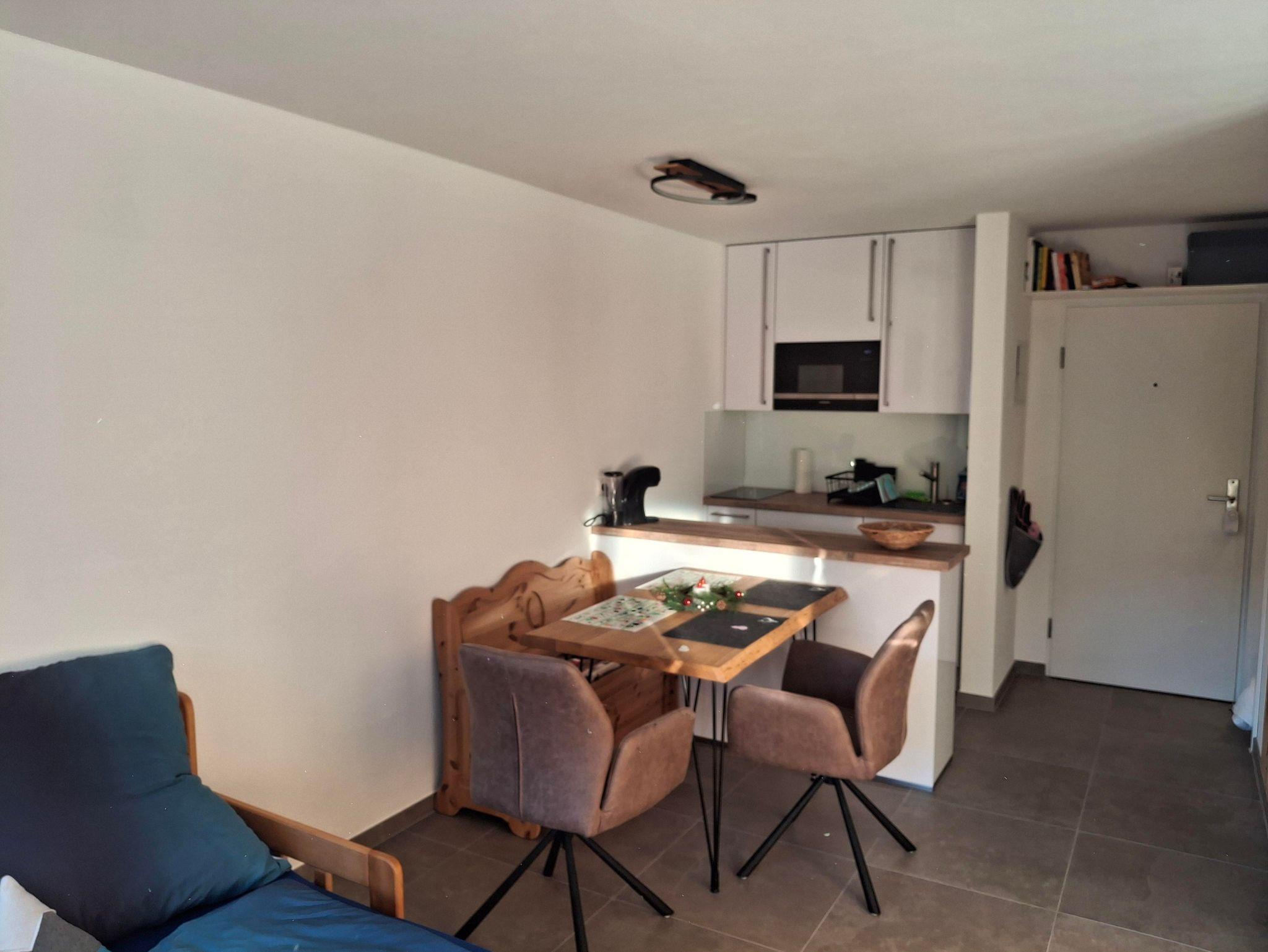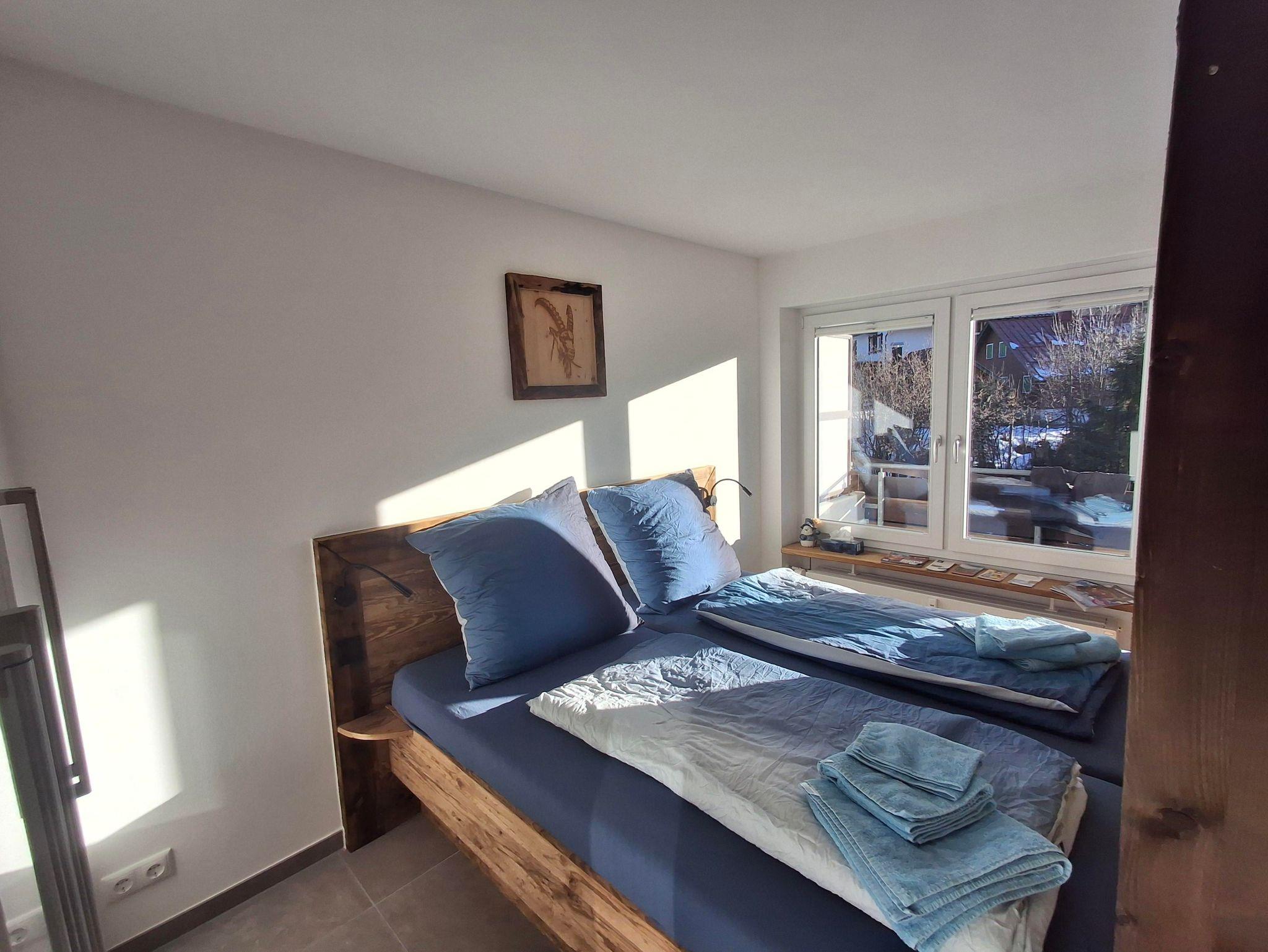 Die frisch renovierte Wohnung befindet sich im 1. Obergeschoss im Herzen von Oberjoch und vereint modernen Alpenstil mit Gemütlichkeit: ein heller Wohn- und Essbereich mit voll ausgestatteter Küche, ein komfortables Doppelbett sowie eine Schlafcouch für Kinder oder Gäste.