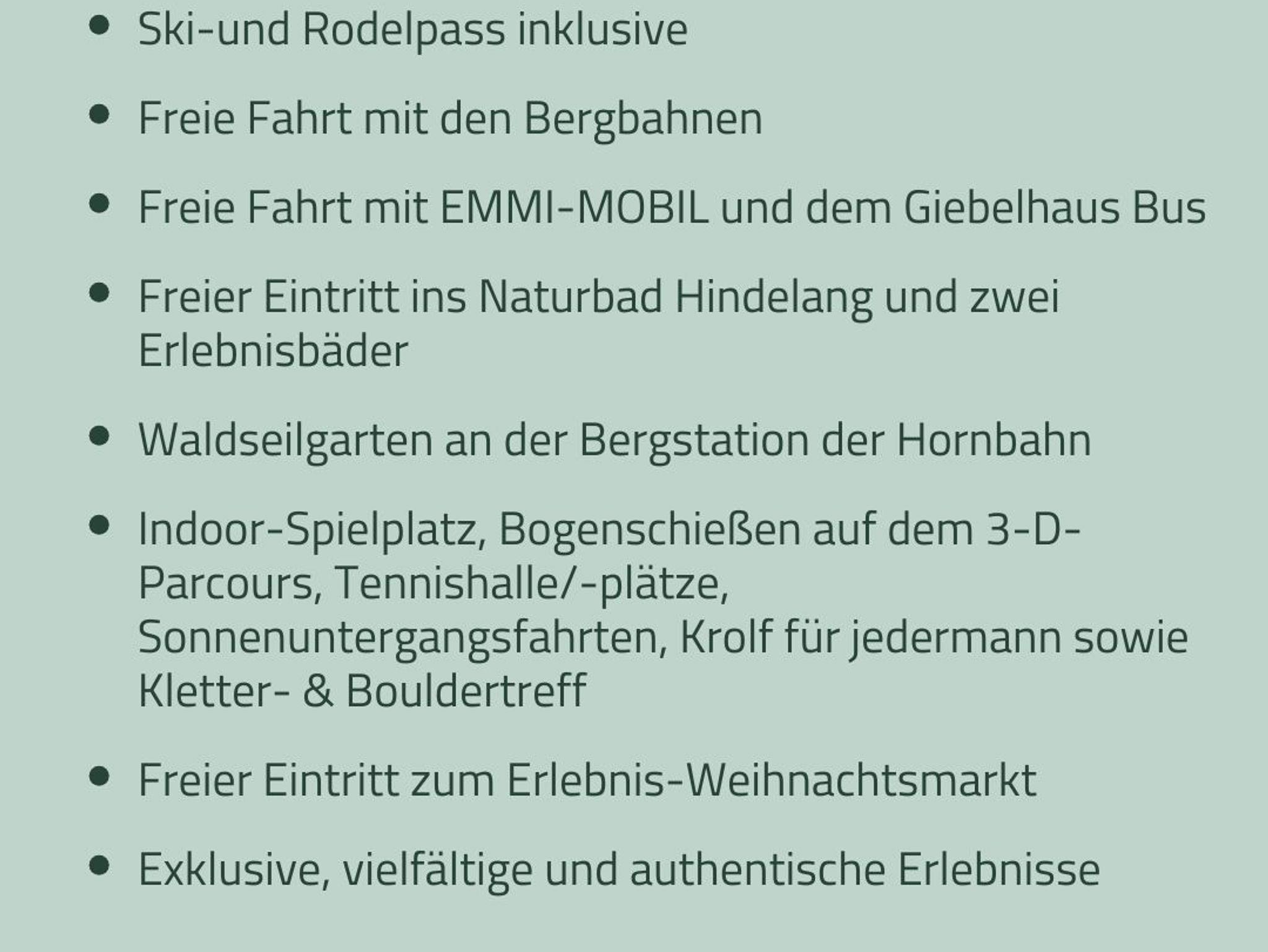 Starte quasi direkt „vom Bett auf's Brett“. Nur wenige Minuten trennen dich von den Skipisten des Skigebiets Oberjoch/Bad Hindelang mit 32 Pistenkilometern, Rodelbahnen und dem großen Kinderland.